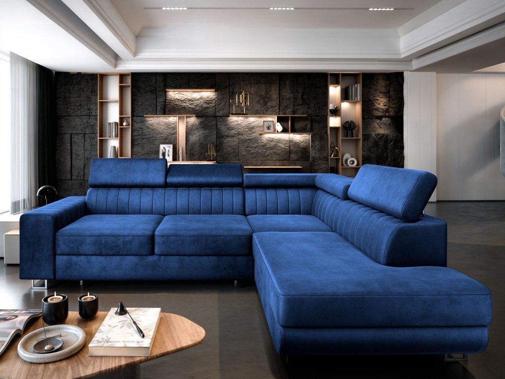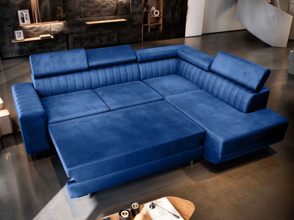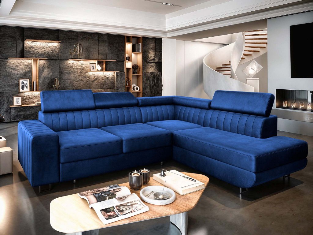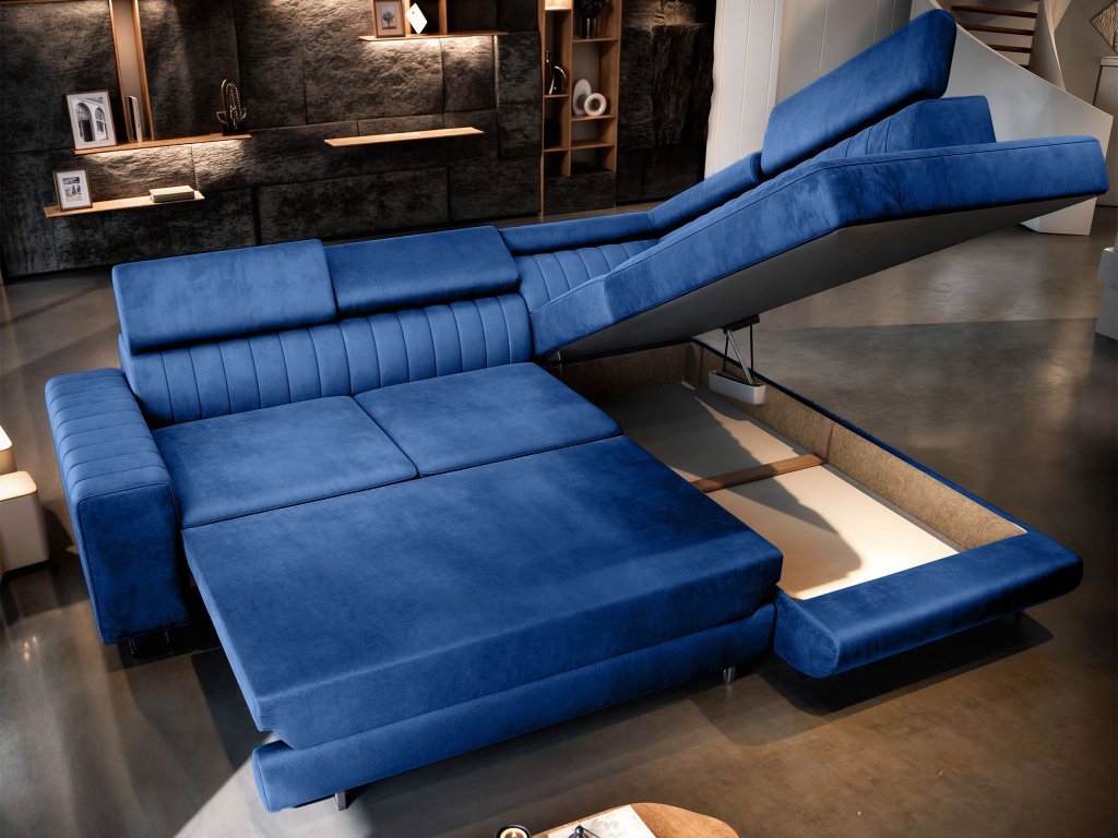 Rohová rozkladacia sedačka s úložným priestorom Nola - modrá