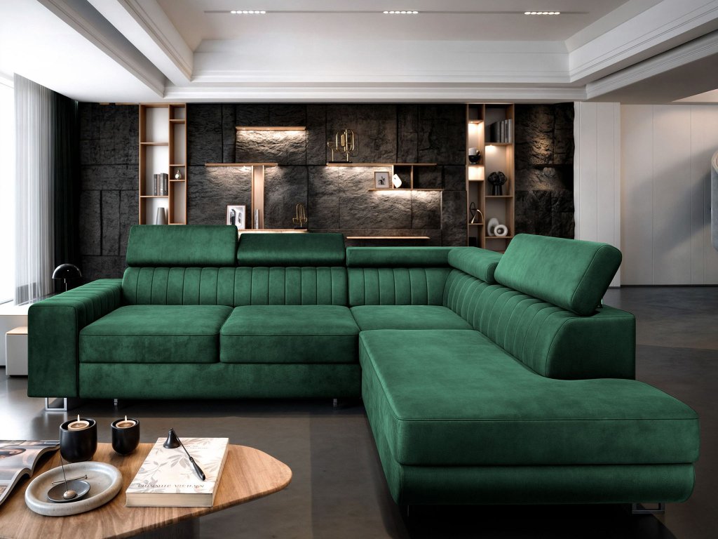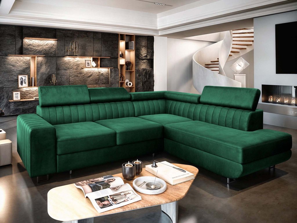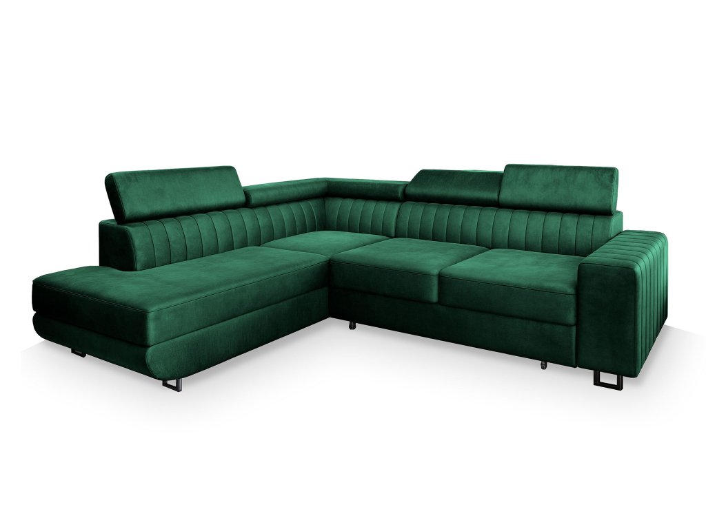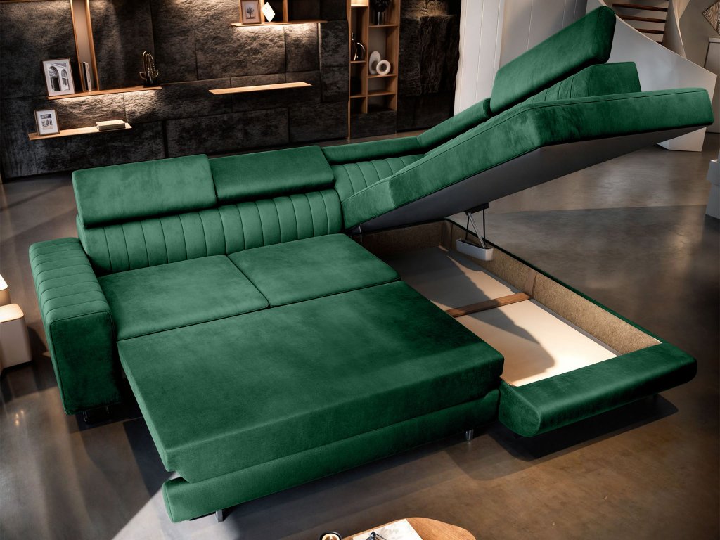Rohová rozkladacia sedačka s úložným priestorom Nola - zelená