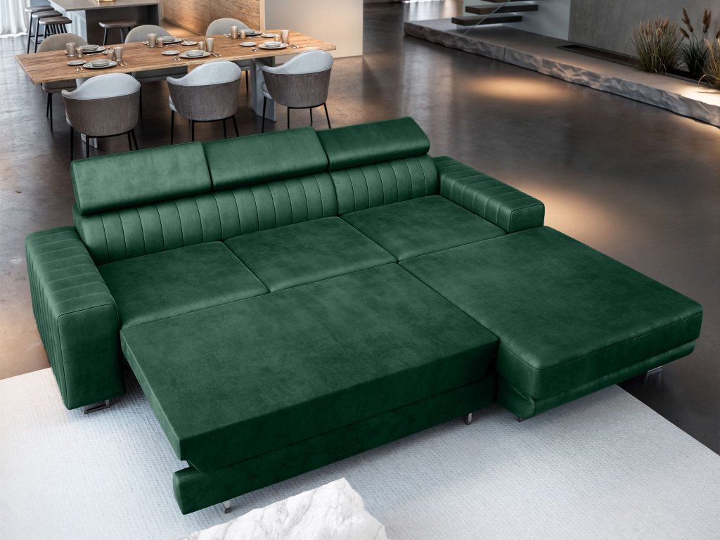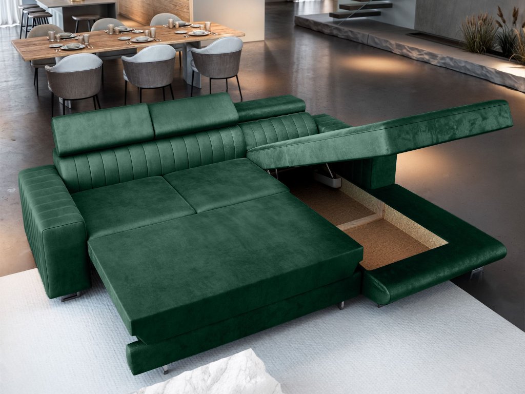 Rohová rozkladacia sedačka s úložným priestorom Noto - zelená