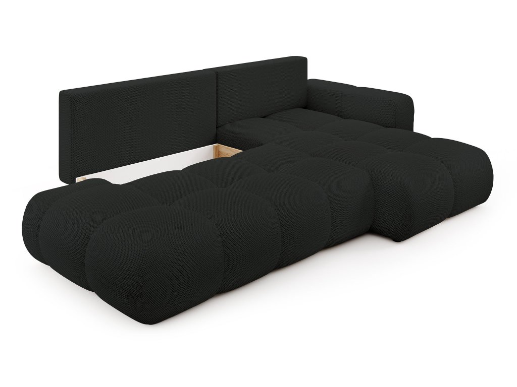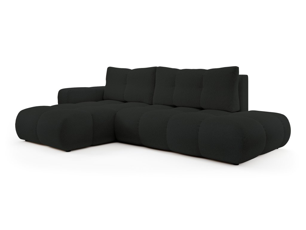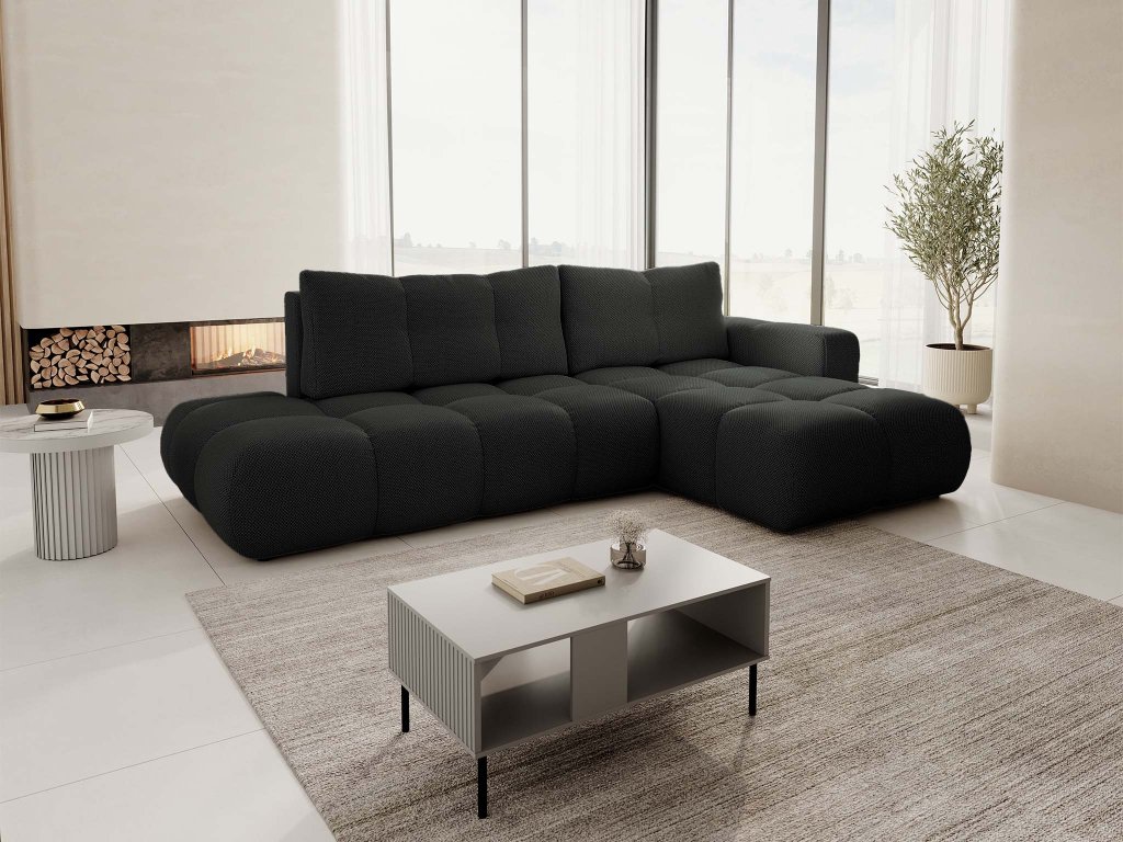 Rozkladacia pohovka Soho v čiernej farbe pôsobí mimoriadne elegantne a zároveň moderne. Výrazné prešívanie po celom povrchu dodáva pohovke luxusný charakter a robí z nej dominantný prvok každej obývačky. Tvar do L poskytuje komfortný priestor na sedenie aj oddych, pričom možnosť výberu pravého alebo ľavého rohu zaručuje jednoduché prispôsobenie dispozícii miestnosti. Nechýba praktický úložný priestor a rozkladacia funkcia, ktorá poslúži ako lôžko pre hostí. Čierne čalúnenie je nadčasové, ľahko kombinovateľné a odolné voči znečisteniu – Soho je ideálnou voľbou pre tých, ktorí hľadajú spojenie dizajnu, pohodlia a praktickosti.