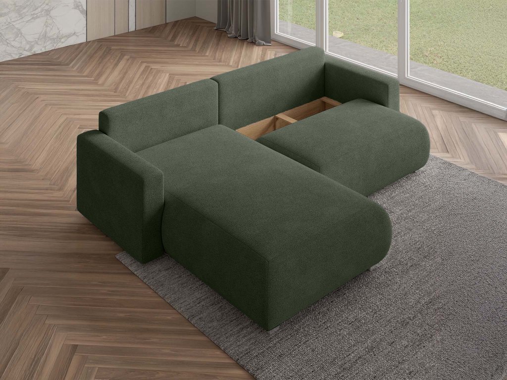 Zelená rohová pohovka Turin N vnesie do vášho domova svieži závan prírody, pohody a rovnováhy. Jej elegantné línie a nadčasový tvar sa dokonale hodia do moderných aj klasických obývačiek, pričom zelený odtieň pôsobí upokojujúco a prináša do priestoru harmóniu. Pohovka je navrhnutá tak, aby poskytovala maximálny komfort – ergonomicky tvarované sedadlá, vlnité pružiny a vysoko elastická pena zabezpečujú výnimočne pohodlné sedenie bez prepadania či straty tvaru. Rozkladacia funkcia umožňuje premeniť pohovku na priestranné lôžko pre hostí v priebehu niekoľkých sekúnd, zatiaľ čo praktický úložný priestor pod sedadlom ponúka miesto na uloženie prikrývok, vankúšov či sezónnych doplnkov. Zelená farba oživí každý interiér a navodí pocit pokoja, sviežosti a prirodzenej elegancie – ako stvorená pre chvíle oddychu po dlhom dni.