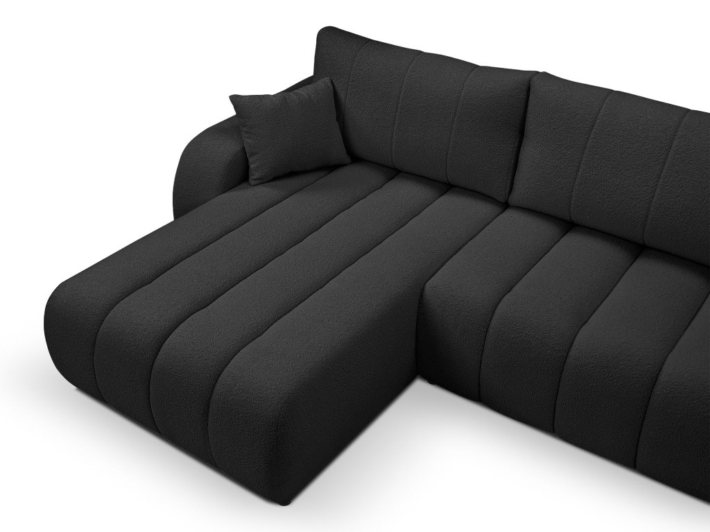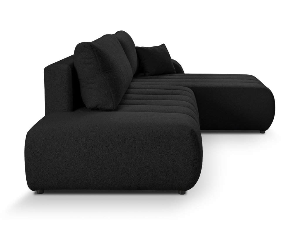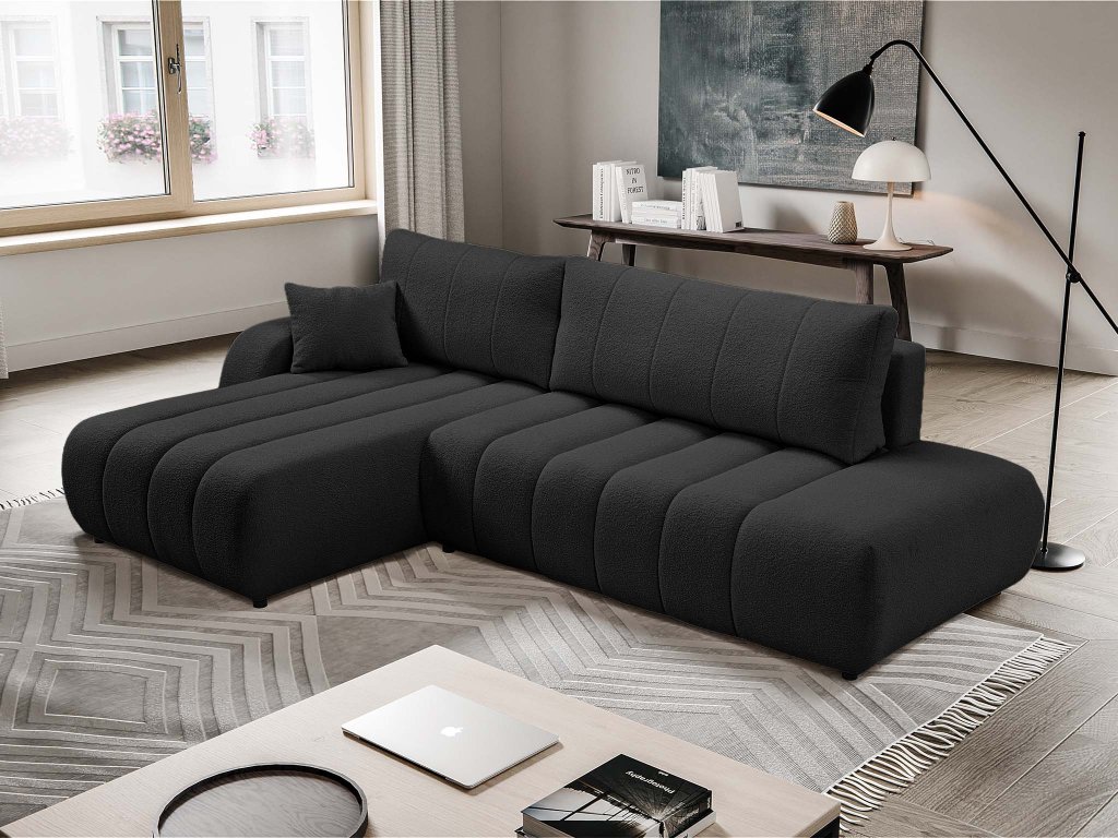 Rozkladacia sedačka Baloo v tvare písmena L premení vašu obývaciu izbu na priestor plný pohodlia. Jej čalúnenie tvorí hebká tkanina Lambi v čiernej farbe, ktorá je nielen príjemná na dotyk, ale aj odolná voči vode. Skvelá voľba pre domácnosti s aktívnym životným štýlom, deťmi alebo domácimi zvieratami. Kontrastne pôsobiace čierne plastové nožičky dodávajú sedačke moderný, jemne výrazný vzhľad.