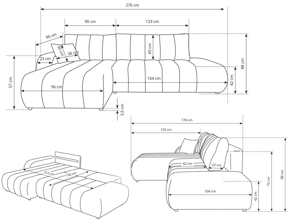 - Rozmer (šxvxh): 276 x 88 x 176 cm