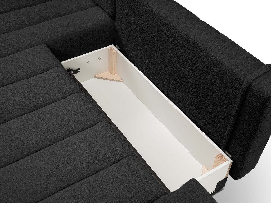 Rohová sedačka ponúka viac než len atraktívny dizajn. Vďaka jednoduchému rozkladaciemu systému ju v okamihu premeníte na pohodlné miesto na spanie. Vstavaný úložný priestor zase poskytne dostatok miesta na posteľnú bielizeň či sezónne prikrývky. O pohodlie pri sedení i ležaní sa starajú odolné PUR peny rôznych typov a tvrdostí, ktoré zabezpečujú vyváženú podporu tela. Stabilitu celej konštrukcie garantuje kombinácia borovicového masívu, preglejky a drevotriesky. Súčasťou sedačky sú aj dva veľké opierkové vankúše a jeden menší dekoračný vankúš s rozmermi 30 × 36 cm.