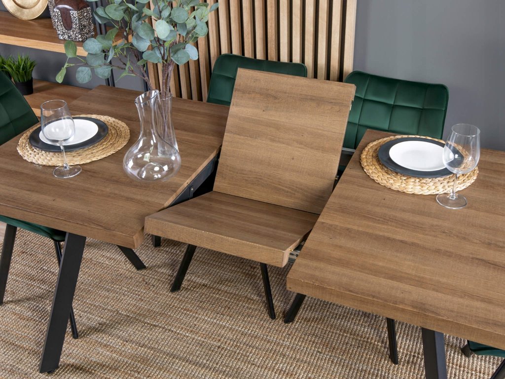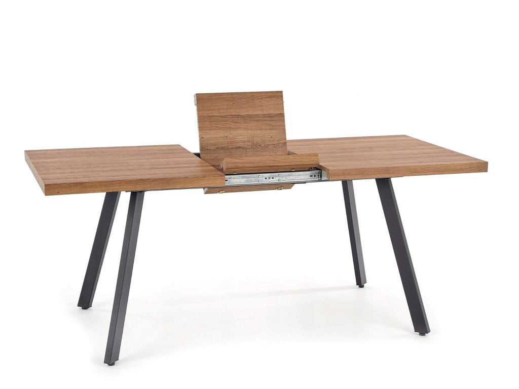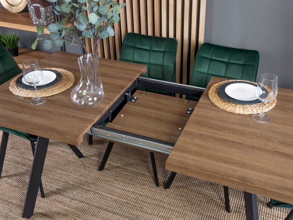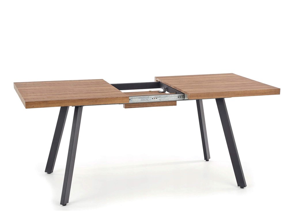 Štýlový jedálenský stôl Berlín je ideálne riešenie do priestrannej kuchyne, vkusne zariadenej jedálne a dokonca aj do reštaurácie. Upúta pozornosť každého, vďaka nadčasovému vzhľadu. Stôl má optimálnu veľkosť čím umožní pohodlne a príjemne sa najesť. Po rozložení má až 180 cm. Užite si chvíle so svojimi blízkymi pri slávnostnej večeri. Univerzálny vzhľad ľahko zladíte s ostatnými kusmi nábytku. Stabilná konštrukcia z ocele s práškovým nástrekom zaručuje dlhodobé používanie stola. Vrchná doska je vyrobená z dyhovanej MDF dosky vo farbe orech. Kombinácia dosky a čierne nohy sa dokonale dopĺňajú a oživia každý priestor.