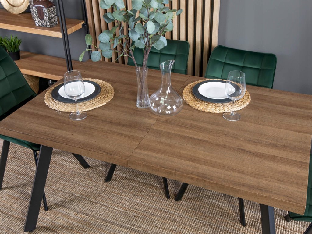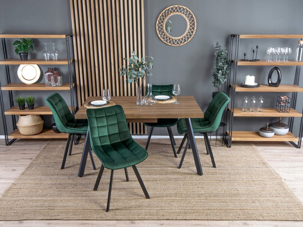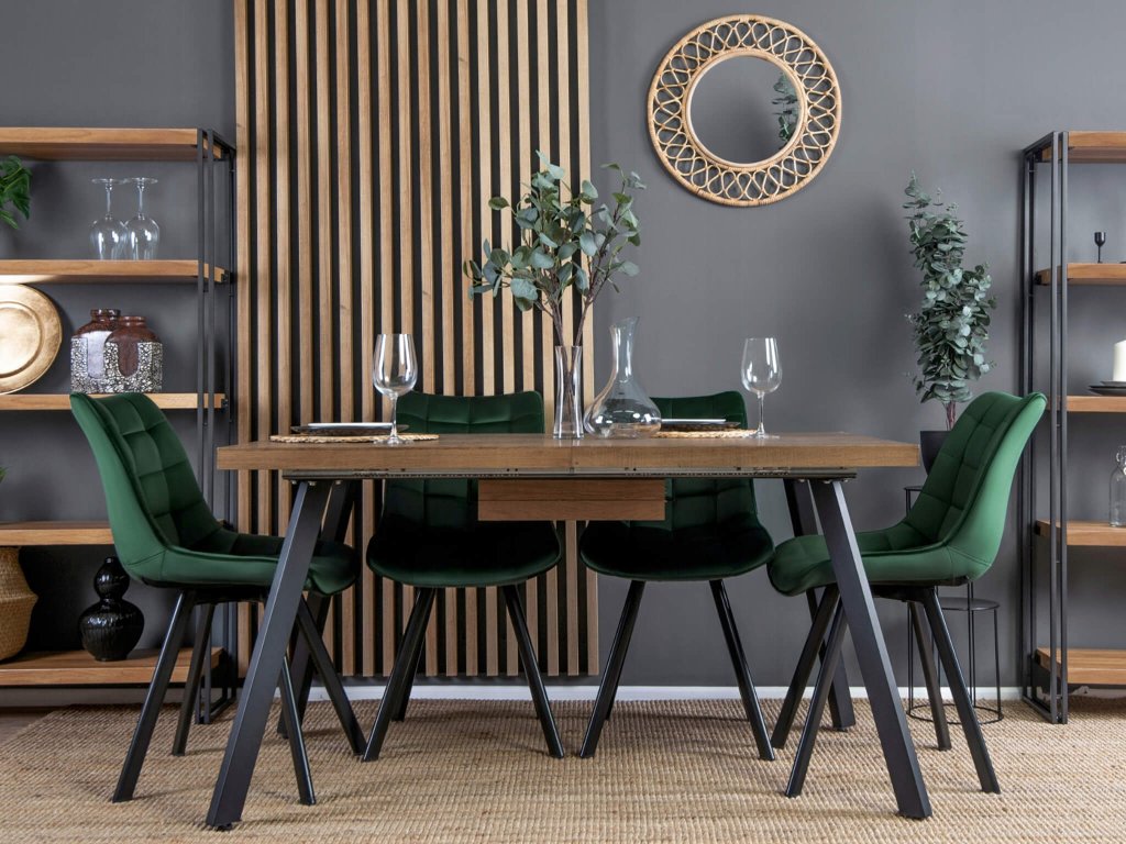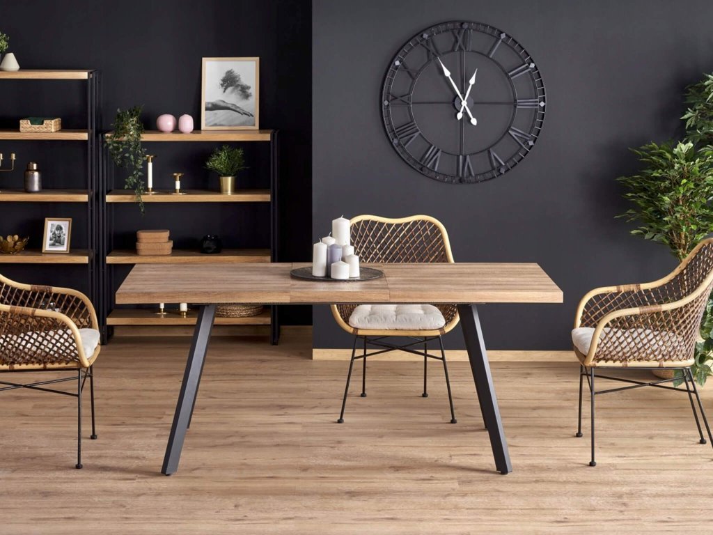 Štýlový jedálenský stôl Berlín je ideálne riešenie do priestrannej kuchyne, vkusne zariadenej jedálne a dokonca aj do reštaurácie. Upúta pozornosť každého, vďaka nadčasovému vzhľadu. Stôl má optimálnu veľkosť čím umožní pohodlne a príjemne sa najesť. Po rozložení má až 180 cm. Užite si chvíle so svojimi blízkymi pri slávnostnej večeri. Univerzálny vzhľad ľahko zladíte s ostatnými kusmi nábytku. Stabilná konštrukcia z ocele s práškovým nástrekom zaručuje dlhodobé používanie stola. Vrchná doska je vyrobená z dyhovanej MDF dosky vo farbe orech. Kombinácia dosky a čierne nohy sa dokonale dopĺňajú a oživia každý priestor.
