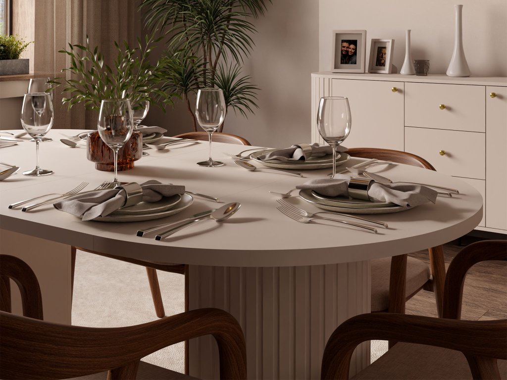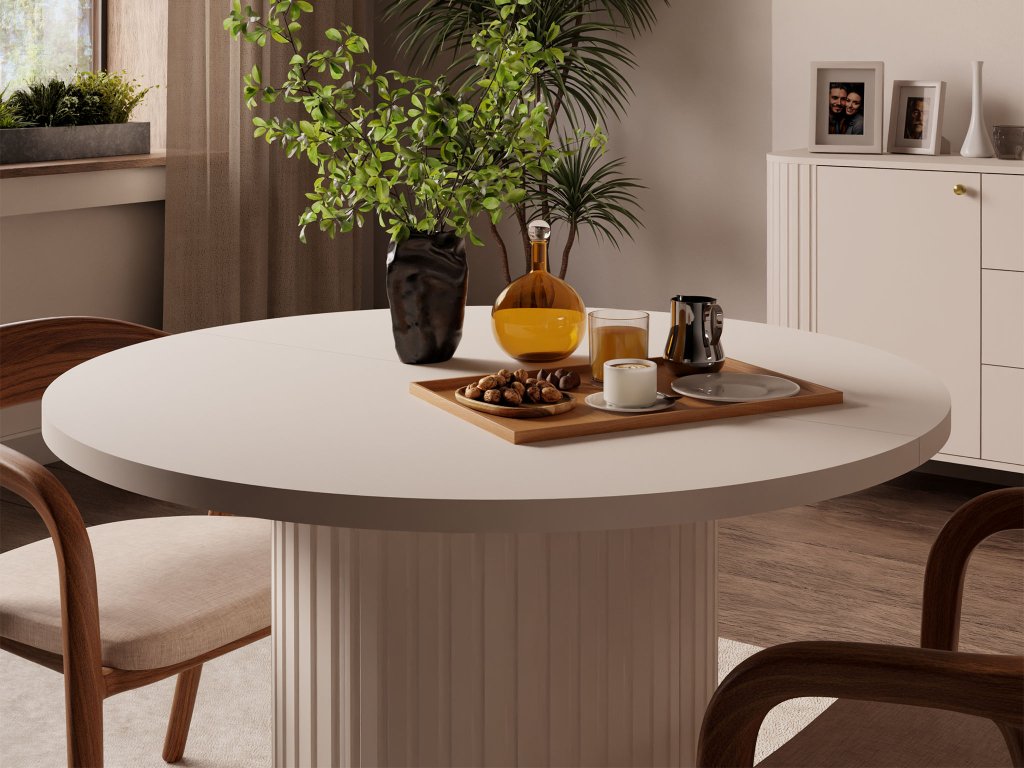 Rozkladací jedálenský stôl OVALIO je premysleným riešením pre moderné bývanie, kde sa spája úspora priestoru s maximálnou funkčnosťou. V zloženom stave ponúka kompaktný priemer 100 cm, no vďaka praktickému rozkladaciemu systému ho jednoducho zväčšíte až na 188 cm. Elegantná piesková farba dodáva stolu jemný a nadčasový vzhľad, ktorý sa ľahko kombinuje s rôznymi štýlmi interiéru.