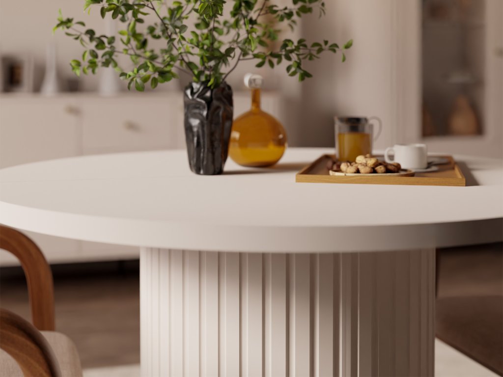 Piesková farba v kombinácii s elegantným oválnym tvarom pôsobí vzdušne a moderne. Tento jedálenský stôl sa hodí nielen do minimalistických interiérov, ale aj do útulne zariadených domácností, kde dominuje prírodný štýl. Vďaka svojmu dizajnu sa stane prirodzeným centrom každej jedálne.