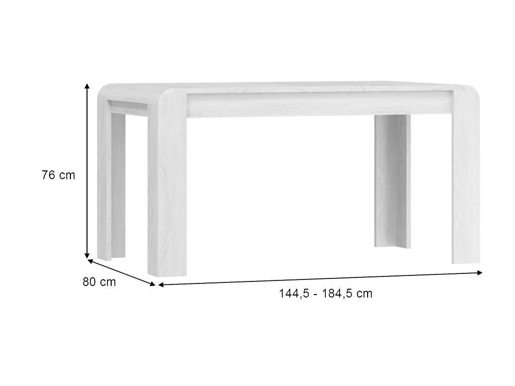 - Rozmery (šxvxh): 144,5 (184,4) x 76,2 x 80 cm