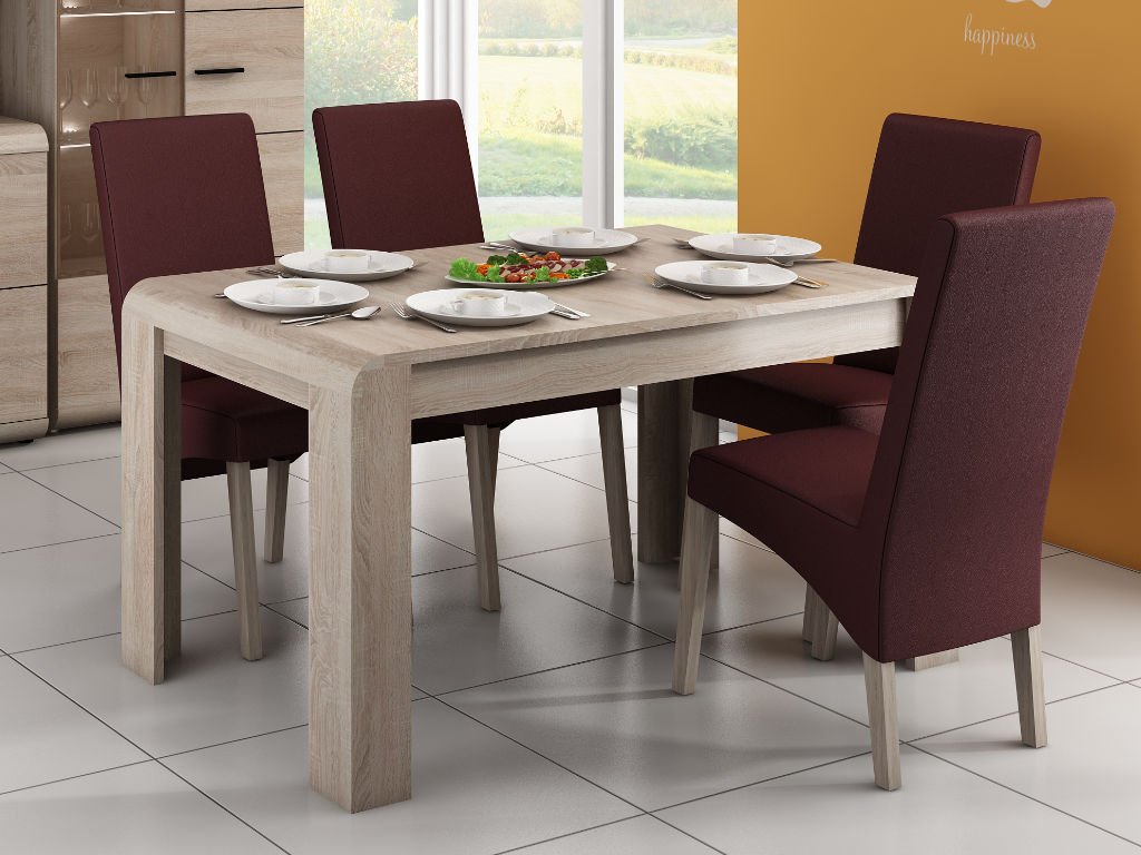 Nábytok z kolekcie LINK na prvý pohľad presvedčí o kvalite. Všetky komponenty sú vyrobené z laminovanej dosky (DTD) o hrúbke 16 a 22 mm, ktorá je odolná voči poškriabaniu, vlhkosti a vysokej teplote. Nábytok sa vyznačuje zaoblenými hranami a pevnou doskou. Stôl je vyhotovený vo farbe dub sonoma s 3D štruktúrou dreva. Kolekcia pozostáva z viacerých komponentov, ktoré si môžete kombinovať podľa vlastného vkusu. Kvalitný materiál, nadčasový dizajn a elegantné prevedenie vdýchnu život každej jedálni. Vďaka odolnosti materiálu vám stôl z kolekcie LINK bude slúžiť dlhé roky.