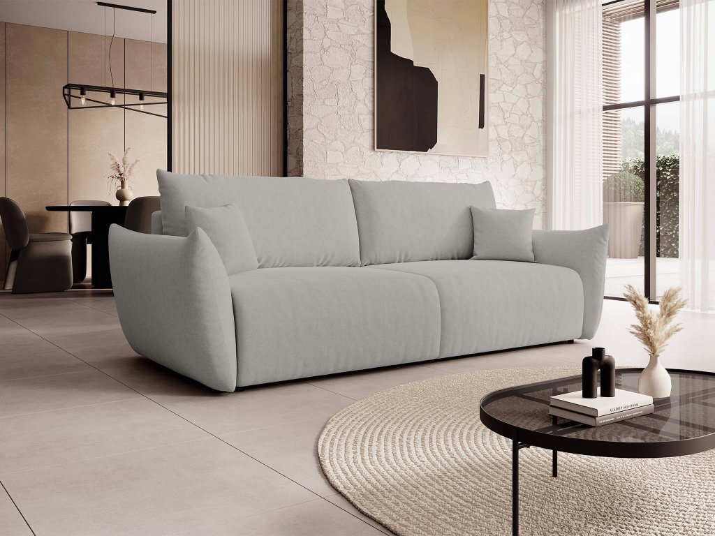 Rozkladacia pohovka Allora je ideálnou voľbou pre tých, ktorí hľadajú štýlové riešenie s dôrazom na pohodlie a ohľaduplnosť k životnému prostrediu. Je čalúnená certifikovanou látkou Melody 2 v svetlosivej farbe, ktorá vyniká jemným povrchom, príjemným dotykom a bezpečným zložením – bez škodlivých látok. Svetlosivý odtieň dodáva pohovke vzdušnosť a nadčasovú eleganciu, ktorá sa hodí do každého moderného interiéru.