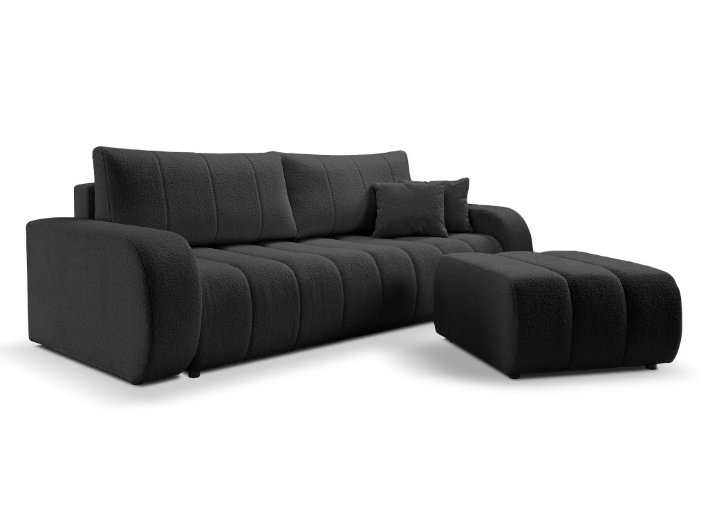 Rozkladateľná pohovka Baloo je potiahnutá kvalitnou látkou Lambi v elegantnej čiernej farbe. Tento poťah je jemný a mäkký na dotyk, vzdušný, no zároveň vodeodolný. Vďaka tomu sa ľahko udržiava čistý a oceníte ho aj v domácnosti s malými deťmi či domácimi miláčikmi, kde je dôležitá odolnosť a jednoduchá údržba.