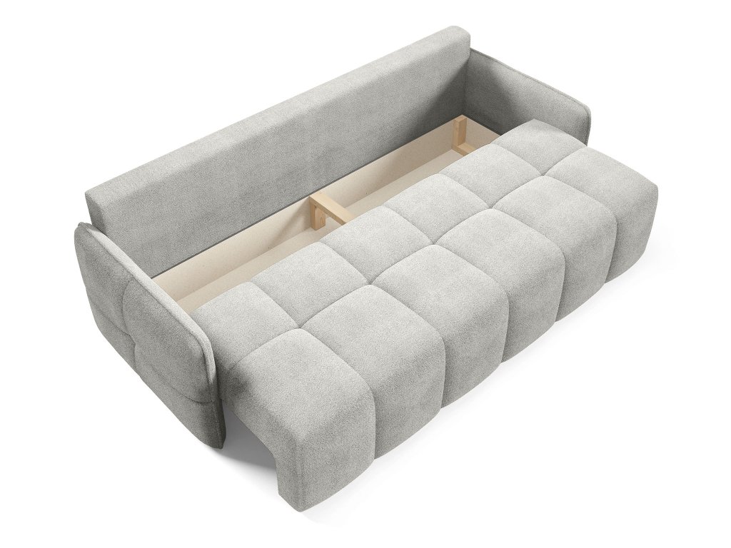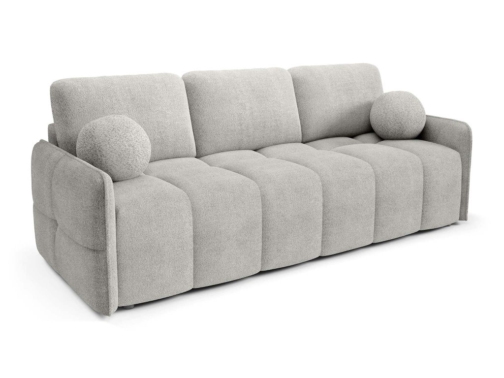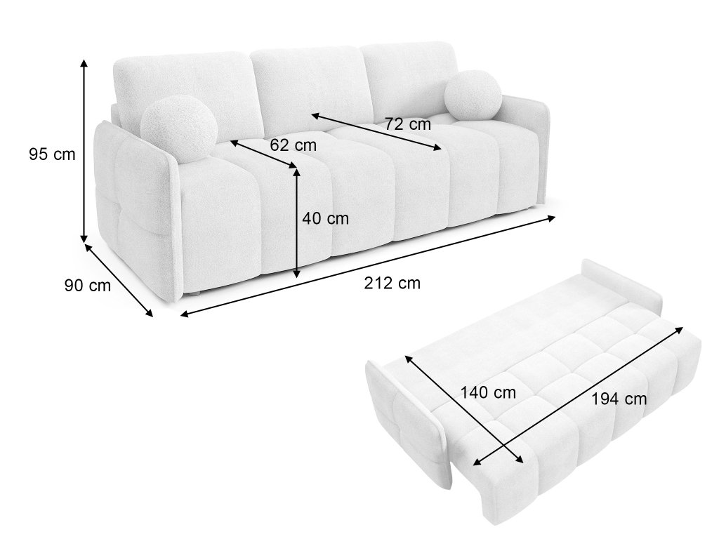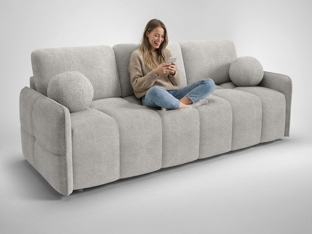 Elia je vybavená praktickou rozkladacou funkciou, vďaka ktorej sa jednoducho premení na lôžko pre hostí alebo príležitostné spanie. Integrovaný úložný priestor ponúka praktické riešenie pre uskladnenie posteľnej bielizne, prikrývok či sezónnych doplnkov a pomáha udržiavať poriadok v obývacej izbe. Estetickú hodnotu pohovky dopĺňajú odnímateľné dekoračné vankúše, vrátane dvoch vankúšov v tvare guľky, ktoré pridávajú sofistikovaný a osobitý vzhľad. Vďaka čalúnenej zadnej časti je Elia vhodná aj na voľné umiestnenie do priestoru, kde vynikne zo všetkých uhlov a zaujme každého návštevníka.