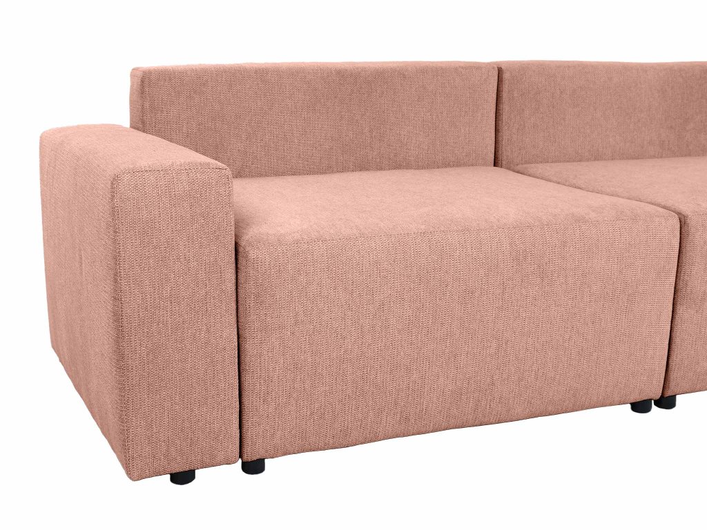 Táto rozkladacia pohovka v elegantnej ružovej farbe sa stane súčasťou vašej obývačky a zároveň štýlovým nábytkovým doplnkom. Pohovke nechýba ani priestranný úložný priestor, ktorý vám pomôže udržať poriadok a získať viac miesta pre vaše veci. Ponúka nielen komfortné sedenie pre viac osôb, ale aj možnosť rozloženia na lôžko, ktoré využijete pri návštevách alebo na každodenné spanie. Zaujímavosťou je možnosť čiastočného rozloženia, vďaka ktorej sa čalúnená pohovka jednoducho prispôsobí tvaru písmena L. Čalúnenie tvorí odolná látka Aragon. Je jemná na dotyk, no zároveň praktická na údržbu. Komfort pri sedení zabezpečujú bonell pružiny vysoké 10 cm v kombinácii s kvalitnou penou T30, čo oceníte najmä pri dlhšom sedení či ležaní. K sedačke sú dodávané aj dva veľké vankúše.