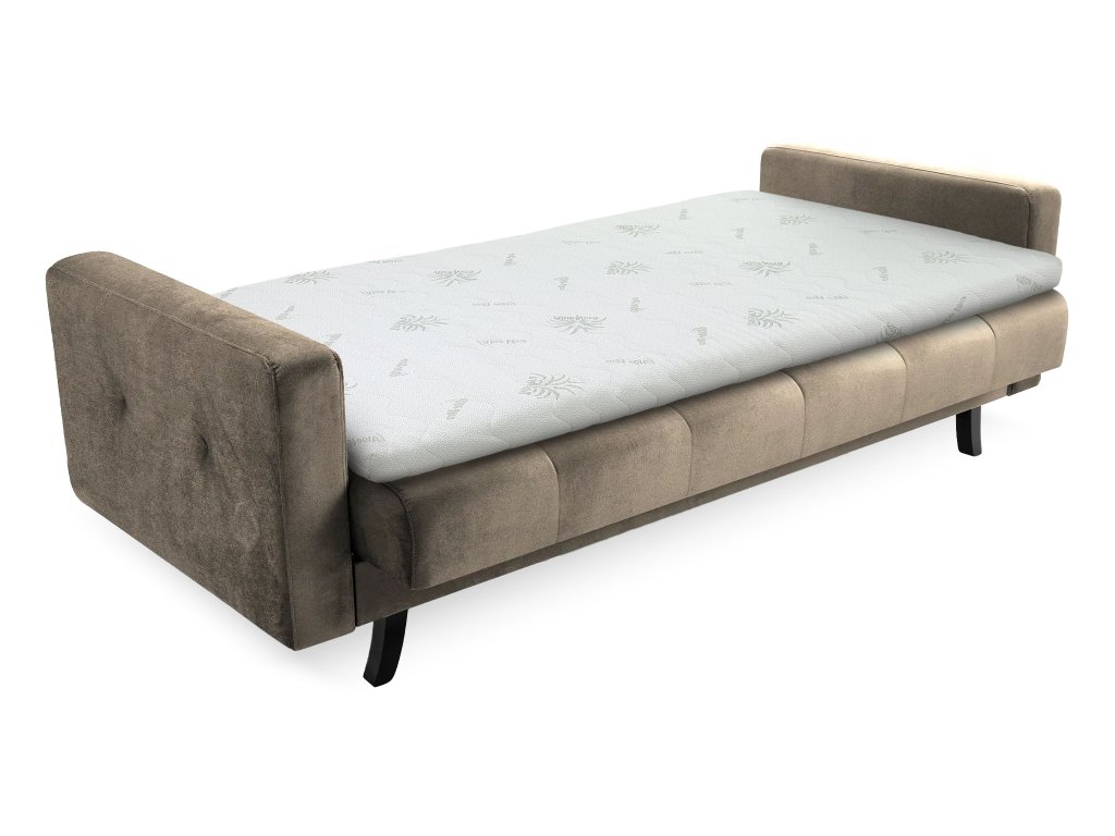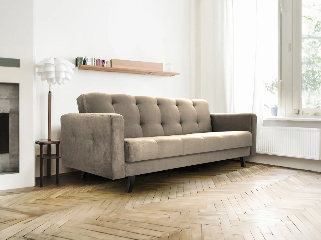 Pohovka do obývačky Lisabon je mimoriadne praktická. Vďaka klik-klak funkcii rozkladania sa razom premení na priestranné lôžko. Ideálne pre hostí alebo pre chvíle, keď si chcete natiahnuť nohy a oddýchnuť. Pod sedadlom sa nachádza praktický úložný priestor, kde môžete uschovať posteľnú bielizeň alebo sezónne oblečenie. Je vyrobená z tých najlepších materiálov - masívneho dreva, nábytkovej dosky, pružín Bonell a vysoko elastickej peny T30.