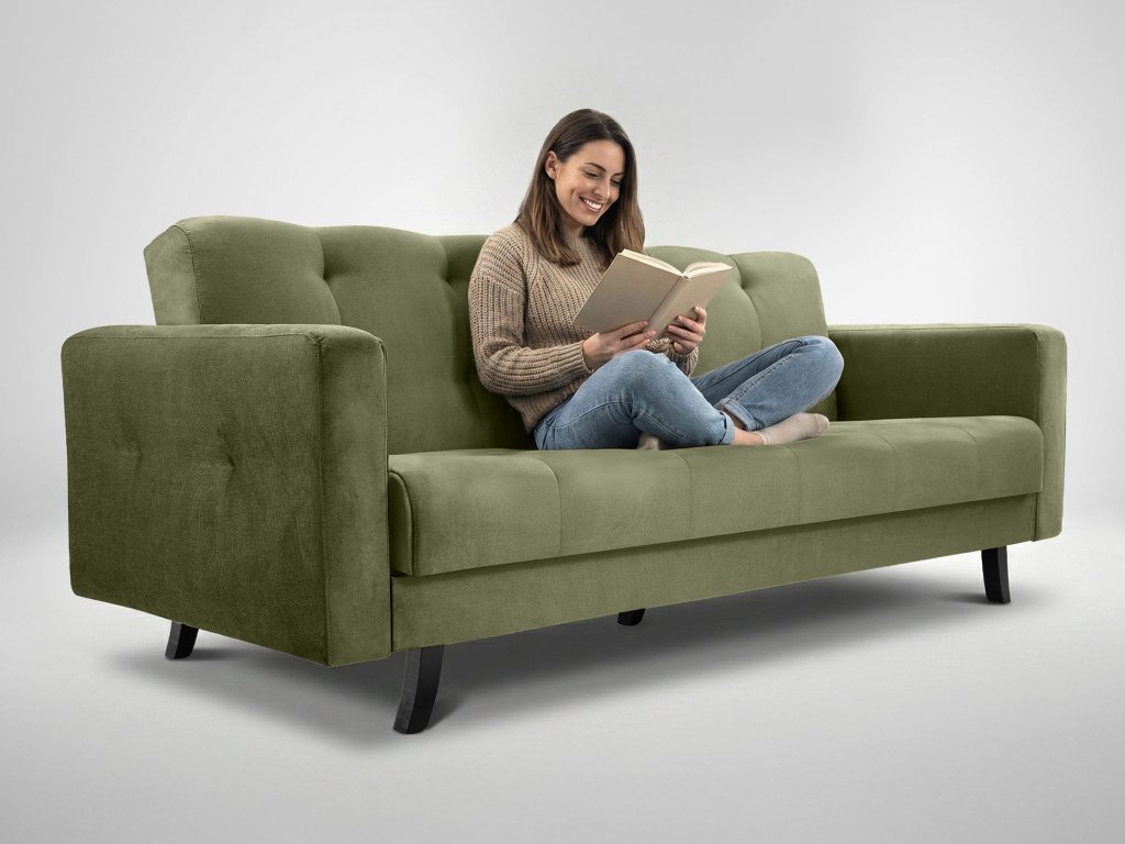 Rozkladacia pohovka Lisabon s úložným priestorom – olivová elegancia s praktickým využitím