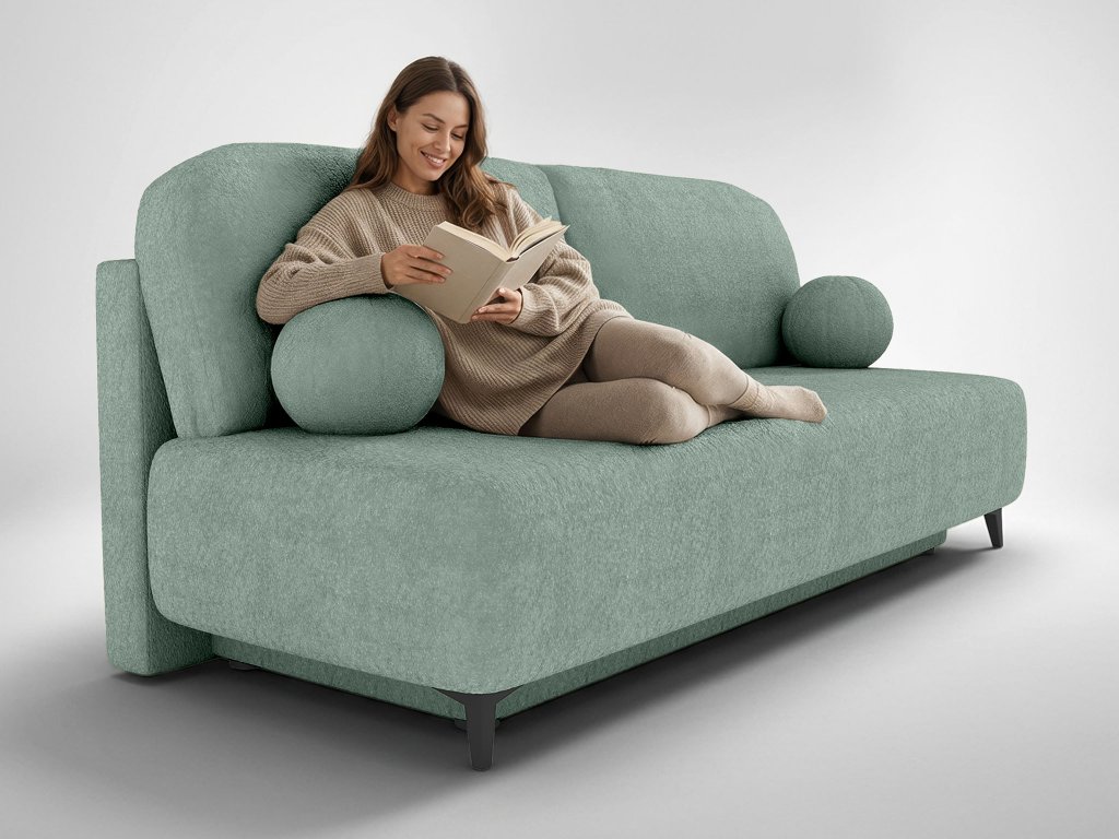 Dizajn pohovky Rio stavia na jednoduchých líniách a elegantných detailoch. Čierne kovové nohy dodávajú nábytku moderný charakter, zatiaľ čo mentolové čalúnenie z látky Abriamo pôsobí sviežo a nadčasovo. Táto odolná buklé látka zo slučkovanej priadze je vysoko rezistentná voči oderu, žmolkovaniu a vyblednutiu, takže si moderná trojmiestna pohovka zachová svoj atraktívny vzhľad aj pri každodennom používaní. Pohovka Rio poskytuje dostatok priestoru na pohodlný oddych pre rodinu aj návštevy, pričom spája štýl, komfort a funkčnosť v jednom.