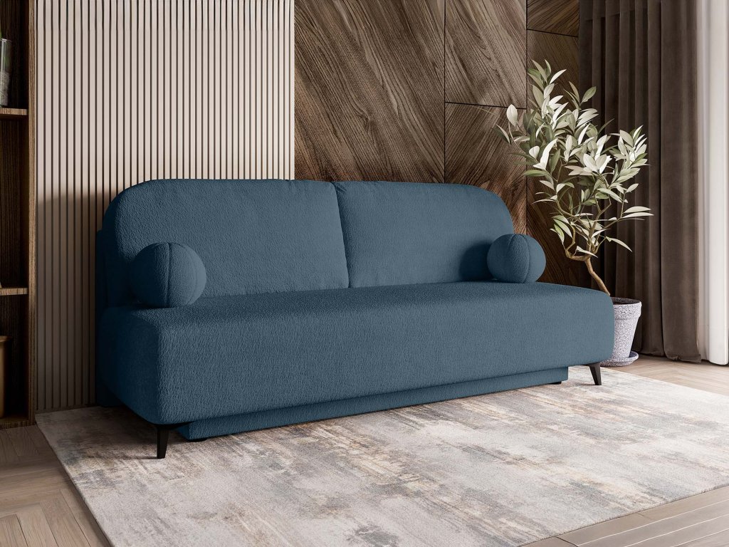Vneste do svojej obývačky farbu a pohodlie s pohovkou Rio. Táto elegantná modrá čalúnená pohovka spája moderný dizajn s praktickými funkciami, takže je ideálna na každodenné používanie. Jemné čalúnenie dodáva nábytku nadčasový vzhľad, zatiaľ čo čierne kovové nohy pôsobia štýlovo a elegantne. Ako trojmiestna pohovka poskytuje dostatok priestoru pre rodinu, priateľov alebo na relax po náročnom dni. Pohovka Rio sa ľahko rozloží na pohodlné lôžko a úložný priestor pod sedadlom ponúka miesto na deky, posteľnú bielizeň alebo sezónne doplnky, čím z nej robí praktický a všestranný kus nábytku.
