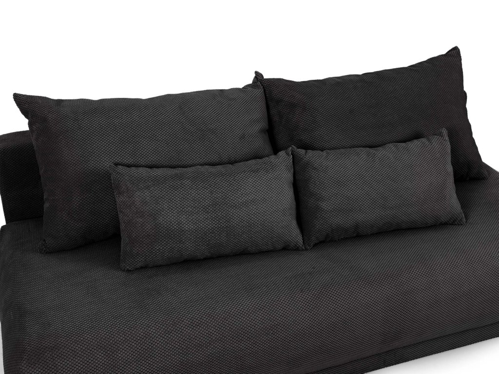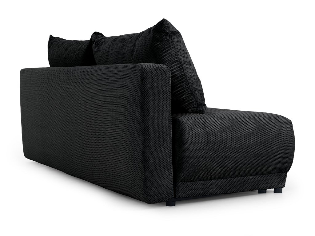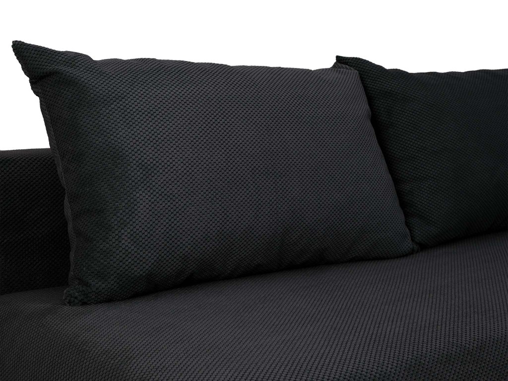 Čierna pohovka Ander sa prispôsobí vášmu životnému štýlu. Vďaka jednoduchému systému rozloženia sa zmení na komfortné lôžko vhodné na každodenné spanie alebo pre návštevy. V spodnej časti sa nachádza praktický úložný priestor, do ktorého si môžete uložiť posteľnú bielizeň, deky alebo iné drobnosti, ktoré chcete mať vždy poruke. Súčasťou pohovky sú aj štyri dekoračné vankúše – dva väčšie a dva menšie – ktoré dotvárajú jej vzhľad a pridávajú na pohodlí. Čalúnená pohovka v čiernej farbe tak spája estetiku s praktickým využitím a stane sa elegantným, no zároveň funkčným doplnkom vášho interiéru.