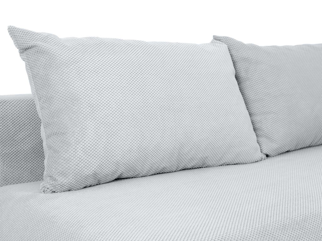 Pohovka Ander spája moderný štýl s praktickými funkciami. Vďaka jednoduchému mechanizmu ju rýchlo rozložíte na priestranné lôžko – ideálne na každodenné spanie alebo pre nečakaných hostí. V jej konštrukcii sa ukrýva praktický úložný priestor, do ktorého si môžete uložiť posteľnú bielizeň, prikrývky či vankúše. Súčasťou sú štyri dekoračné vankúše – dva väčšie a dva menšie – ktoré dopĺňajú celkový vzhľad a zvyšujú pohodlie. Táto svetlosivá čalúnená pohovka sa tak stane nielen centrom odpočinku, ale aj štýlovým doplnkom vášho domova.