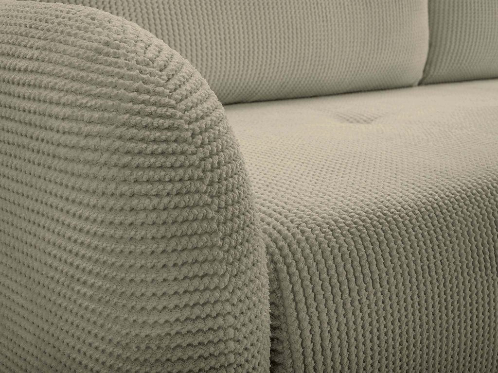 Menčestrová štruktúra látky dodáva pohovke jemnú textúru a hrejivý pocit pri dotyku, ktorý pozýva k pohodlnému posedeniu aj oddychu. Praktický úložný priestor poskytuje dostatok miesta pre uloženie posteľnej bielizne, vankúšov či iných doplnkov, ktoré chcete mať vždy po ruke. Jednoduchý mechanizmus rozkladania umožňuje rýchlu a bezproblémovú premenu pohovky na pohodlné lôžko s rozmermi 140 × 200 cm, ideálne pre každodenný spánok aj návštevy.