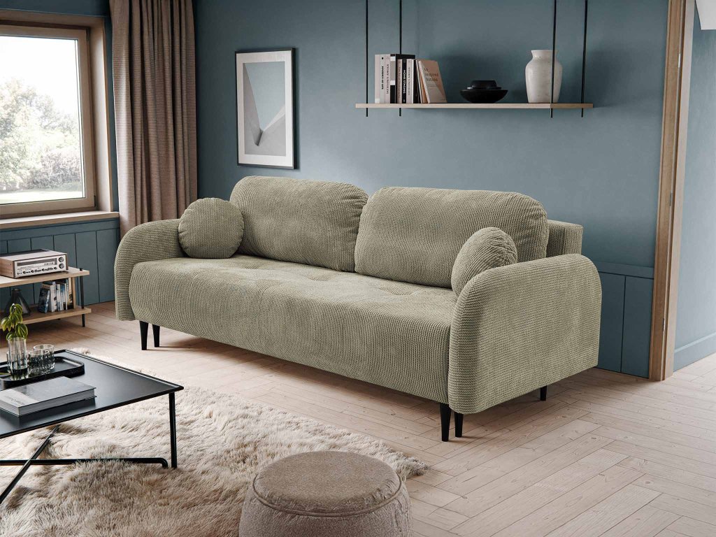 Vneste do svojho domova nádych prírody a harmónie s rozkladacou pohovkou Cloud v elegantnej olivovej farbe. Tento unikátny odtieň prináša pokoj a vyrovnanosť do každej miestnosti, pričom zároveň vynikne svojim nadčasovým dizajnom inšpirovaným retro štýlom.