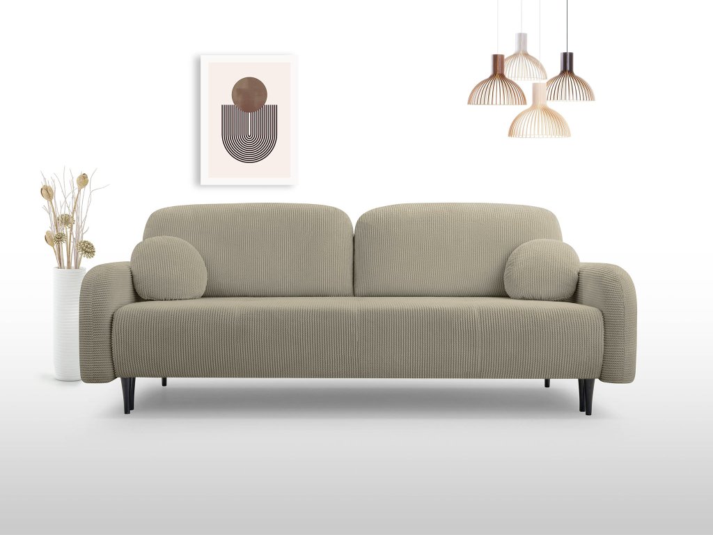 Vnútorná výplň z PUR peny T30/40 a vlnitých pružín zabezpečuje optimálnu oporu a komfort pri sedení i spánku. Zaoblené línie pohovky, doplnené o dekoratívne vankúše a drevené nohy, dotvárajú jej príjemný a útulný vzhľad, ktorý dokonale ladí s prírodnými odtieňmi interiéru. Olivová farba vnesie do vášho domova pocit pokoja a zároveň štýlový akcent, ktorý si zamilujete.