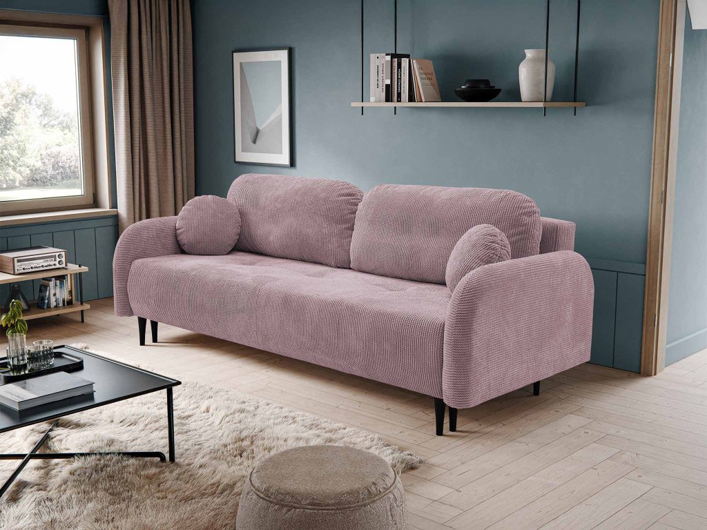 Ak hľadáte pohovku, ktorá zaujme nežnou farbou aj funkčnosťou, model Cloud v ružovej farbe vás určite osloví. Táto elegantná rozkladacia pohovka spája retro šarm 60. rokov so súčasnými požiadavkami na pohodlie a praktické riešenia. Oblé línie, mäkké kontúry a látka s menčestrovou štruktúrou z nej robia kúsok, ktorý sa v interiéri nestratí – práve naopak, stane sa jeho stredobodom.