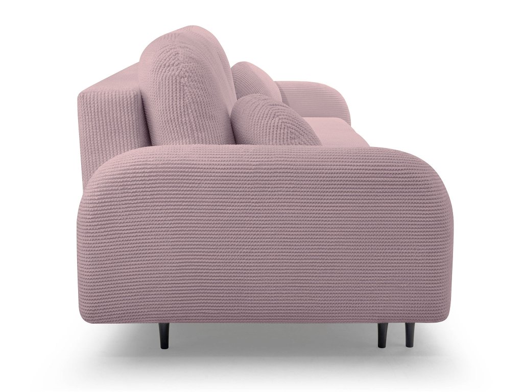 Čalúnené operadlo a dekoračné vankúšiky v rovnakom odtieni prispievajú k celkovej útulnosti a štýlovému dojmu. Ružová farba pôsobí jemne a moderne, pričom menčestrový povrch dodáva pohovke vizuálnu hĺbku a príjemný pocit na dotyk. Cloud je skrátka pohovka, na ktorú sa budete tešiť každý deň – či už pri relaxe s knihou, sledovaní filmu alebo pokojnom spánku.