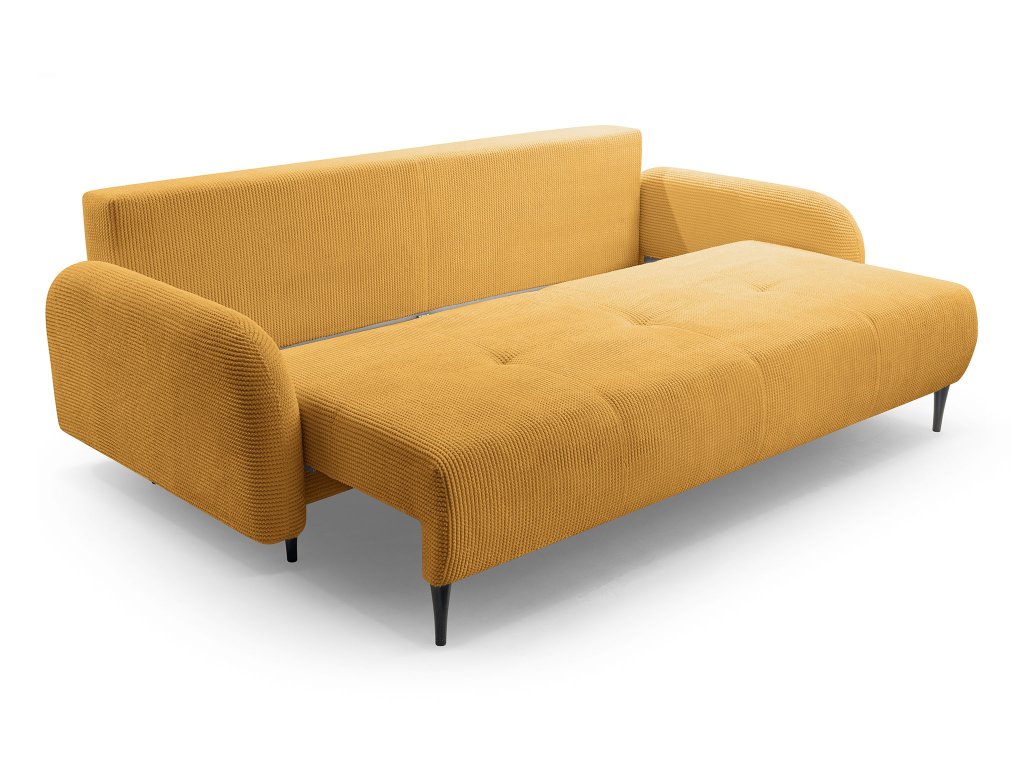 Rozjasnite svoj interiér energiou a štýlom s rozkladacou pohovkou Cloud v žiarivej žltej farbe. Táto pohovka je oslavou pohodlia aj praktickosti, ktoré spája s ikonickým dizajnom 60. rokov. Menčestrová štruktúra látky dodáva pohovke nielen zmyselný dotyk, ale aj výrazný vizuálny charakter, ktorý okamžite upúta pozornosť v každej miestnosti.