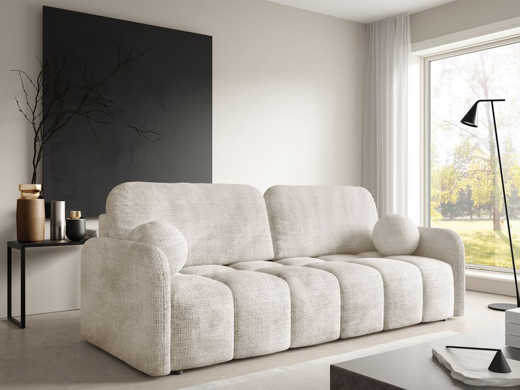 Hľadáte pohovku, ktorá sa stane srdcom vašej obývačky? Rozkladacia pohovka s úložným priestorom Cube v elegantnom béžovom odtieni je navrhnutá pre tých, ktorí vyžadujú moderný vzhľad bez ústupkov v pohodlí. Táto pohovka rozkladacia vyniká čistým dizajnom, ktorý dopĺňa ucelené operadlo z veľkých vankúšov a sedadlo so zaujímavým vzorom pravidelného prešívania. Vďaka kombinácii vlnitej pružiny a kvalitnej peny T3038 ponúka kráľovský komfort pri sedení aj počas spánku. Robustná konštrukcia z borovicového dreva a MDF zaručuje stabilitu, zatiaľ čo automatický mechanizmus umožňuje premeniť túto rozťahovaciu pohovku na lôžko s plochou 194x140 cm v priebehu pár sekúnd.