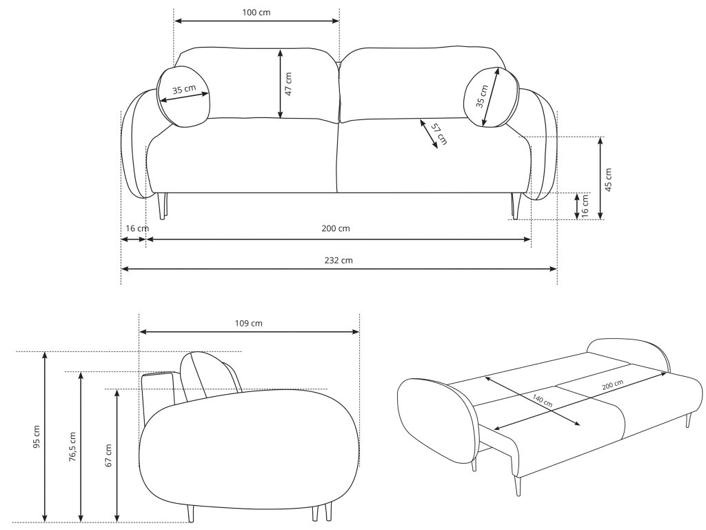 - Rozmer (šxvxh): 232 x 95 x 109 cm