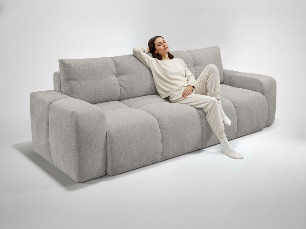 Rozkladacia pohovka Soho v sivej farbe spája moderný štýl s praktickými funkciami. Výrazné bočnice a jemné prešívanie jej dodávajú elegantný vzhľad, ktorý pôsobí zároveň útulne. Mäkké operné vankúše a pohodlný sedák poskytujú vysoký komfort pri sedení aj relaxe. Poťah z látky Curio 80 je odolný, príjemný na dotyk a ľahko sa udržiava. Vďaka DL mechanizmu pohovku jednoducho rozložíte na pohodlné lôžko pre hostí alebo večerný oddych. Praktický úložný priestor pod sedadlom ponúka miesto na uschovanie posteľnej bielizne, diek či iných vecí, ktoré chcete mať po ruke. Soho je ideálnou voľbou pre každú modernú obývačku, kde sa spája štýl, pohodlie a funkčnosť.