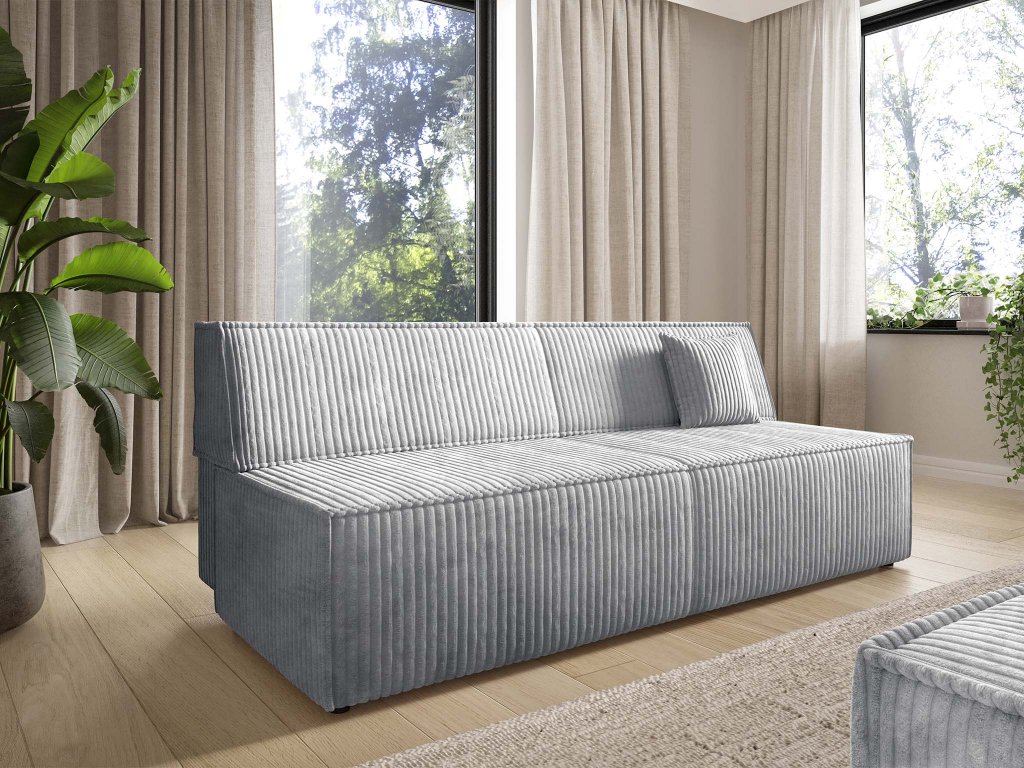 Ak hľadáte pohovku, ktorá zvládne viac než len dobre vyzerať, čalúnená pohovka Tilia je tou správnou voľbou. Poskytuje komfortné sedenie počas dňa a večer sa rýchlo premení na praktické miesto na spánok. Vstavaný úložný priestor diskrétne ukryje vankúše, deky aj posteľnú bielizeň a pomôže vám udržať poriadok v miestnosti. Výraznou črtou je kvalitná velúrová látka s jemným pruhovaním, ktorý pôsobí elegantne a zároveň je príjemný na dotyk. Táto látka vyniká nielen vzhľadom, ale aj odolnosťou voči každodennému opotrebovaniu. Vo vnútri pohovky sa nachádza PUR pena, ktorá poskytuje rovnomerné pohodlie. Robustný rám vyrobený z borovicového masívu, doplnený o preglejku a drevotriesku, zaisťuje dlhú životnosť a stabilitu. Odnímateľné operadlá zjednodušujú čistenie aj rozkladanie a v kombinácii s mäkkými vankúšmi pôsobí pohovka útulne.