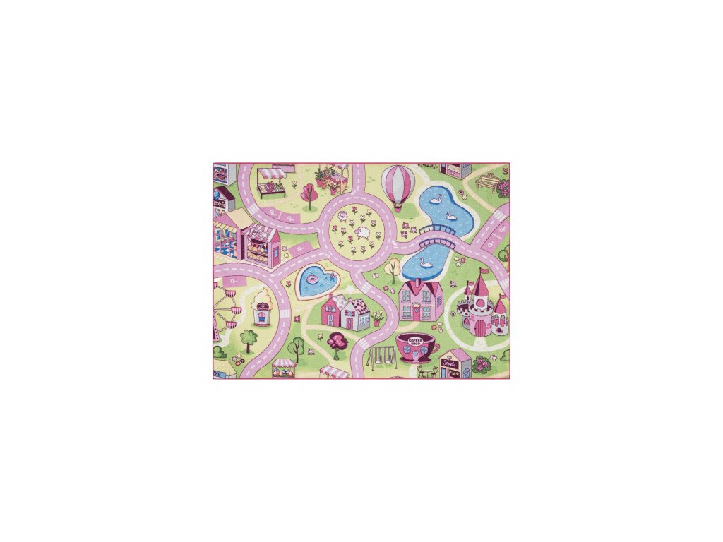 Sweet town je ideálny koberec pre dievčatká, ktorý prinesie do detskej izby hravosť, veselé farby a vďaka protišmykovej úprave aj bezpečnosť. Tento koberec je navrhnutý s ohľadom na deti, pričom jeho povrch je pokrytý sladkými motívmi, ktoré zaujmú každé dieťa. Vyrobený z 100% polyamidu, koberec je nielen odolný, ale aj ľahko udržiavateľný, čo je ideálne pre aktívne deti. Jeho obdĺžnikový tvar sa hodí do rôznych priestorov, či už ide o detskú izbu alebo herňu. Koberec je vyrobený v Belgicku, čo zaručuje vysokú kvalitu a precízne spracovanie. S hrúbkou približne 4 mm poskytuje dostatočný komfort pri chôdzi a hraní. Tento koberec je dostupný v krásnej kombinácii ružovej a zelenej farby, ktorá rozjasní každý priestor.