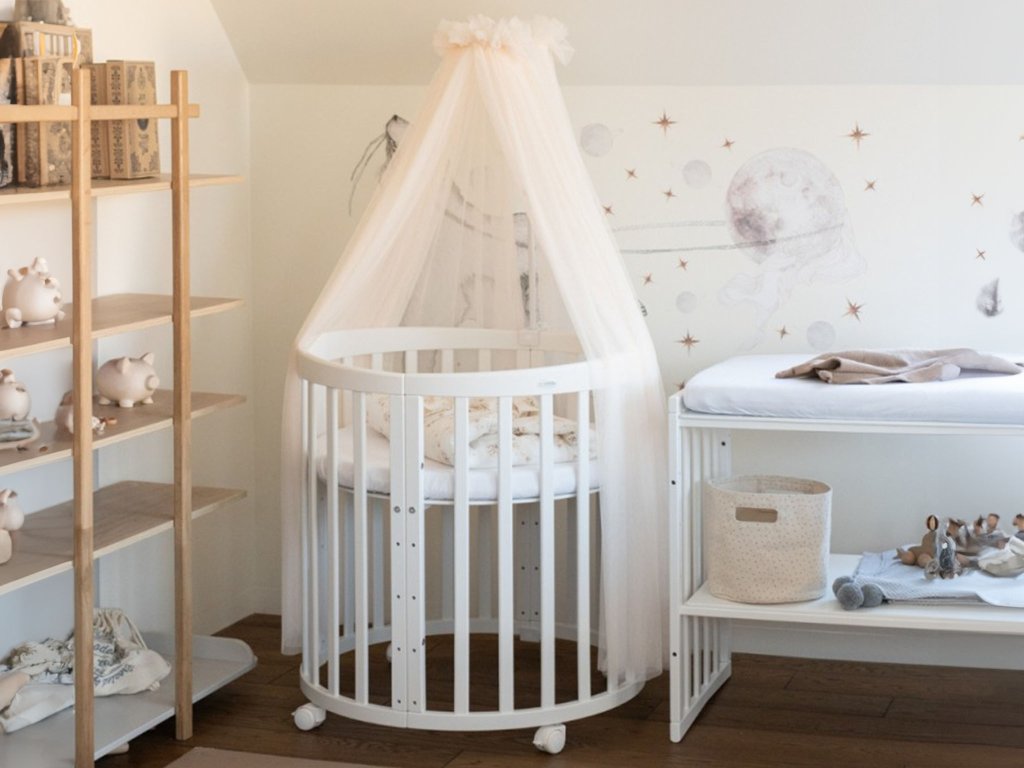 Biela detská postieľka 7v1 – praktický pomocník na dlhé roky. Táto multifunkčná postieľka sa prispôsobí rastu a potrebám vášho dieťaťa. Môžete ju využívať ako prístelku pre novorodencov, oválnu postieľku, ohrádku alebo detský nábytok – kresielka so stolíkom. Vyrobená z bukového dreva s ekologickým náterom bezpečným pre deti, a nastaviteľným roštom v 5 polohách (7–49 cm, s kolieskami 55 cm). Sada obsahuje prateľný trojdielny matrac z peny T25 s bavlneným poťahom.