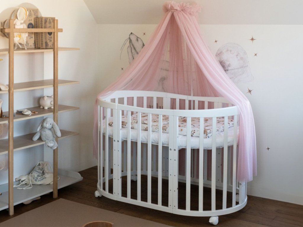 Detská rastúca postieľka 7v1 – multifunkčná rastúca postieľka, ktorá sa prispôsobí potrebám vášho dieťaťa počas jeho rastu. Môžete ju využiť ako prístelku pre novorodencov, oválnu postieľku, ohrádku alebo dokonca detský nábytok – kresielka so stolíkom. Vyrobená z bukového dreva s ekologickým náterom bezpečným pre deti, a s nastaviteľným roštom v 5 polohách (7–49 cm, s kolieskami 55 cm). Súčasťou balenia je prateľný trojdielny matrac z peny T25 s bavlneným poťahom.