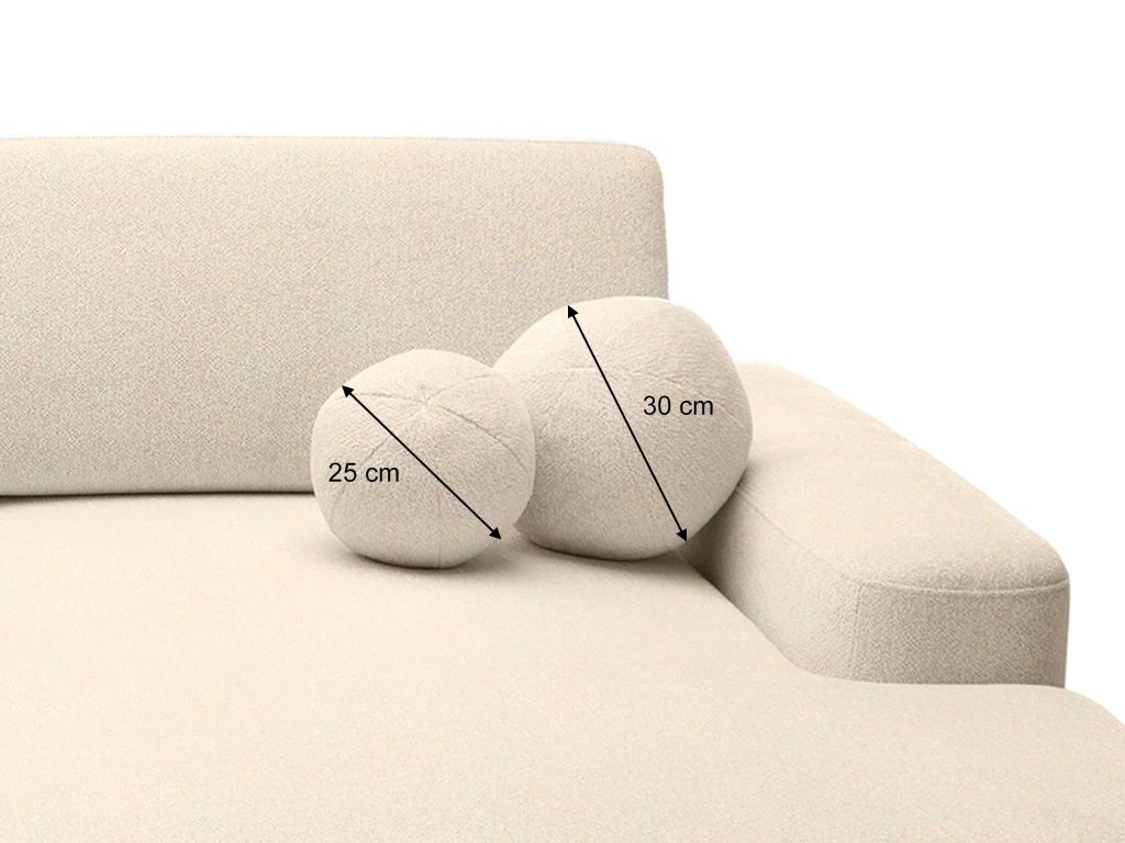 Obohaťte svoj interiér o šarm a hravosť s našou kolekciou elegantných guľatých vankúšov. Táto nádherná súprava pozostáva z dvoch vankúšov, ktoré sú ideálne na doladenie akéhokoľvek priestoru. Menší vankúš má priemer 25 cm, zatiaľ čo väčší dosahuje 30 cm, čo ponúka flexibilitu pri ich rozmiestnení a kombinovaní. Vankúše sú vyrobené z prémiového materiálu Raven, ktorý je nielen vizuálne atraktívny, ale aj veľmi príjemný na dotyk. Nadčasová béžová farba ľahko zapadne do rôznych štýlov interiéru a výborne sa kombinuje s rôznym nábytkom. Ideálna voľba pre modernú a pohodlnú obývačku alebo spálňu.
