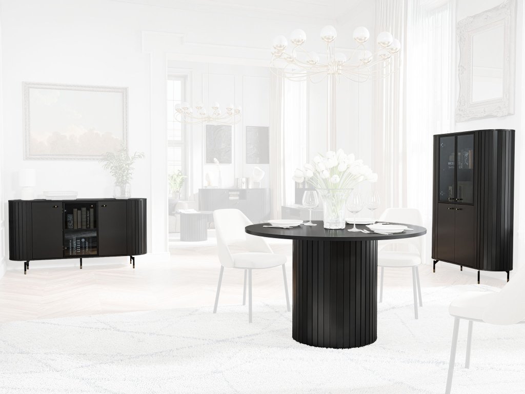 - Jedálensky stôl je hlavným prvkom celej sady. Má okrúhly tvar a vyrobený je z pevných materiálov. Rozmery (šxvxh): 120 x 75,2 x 120 cm