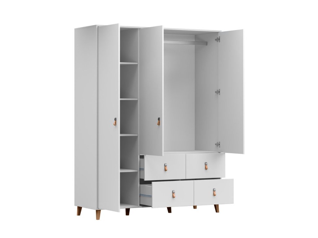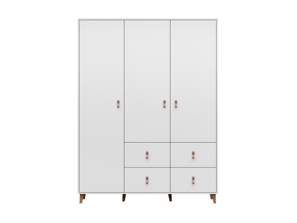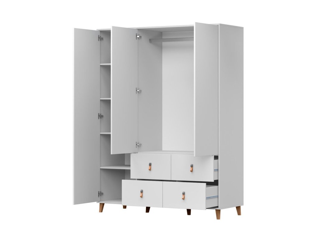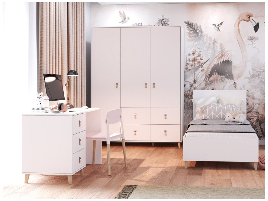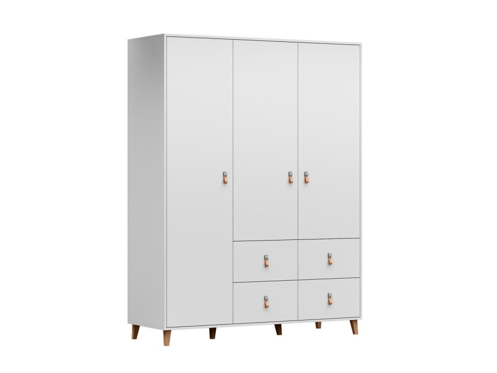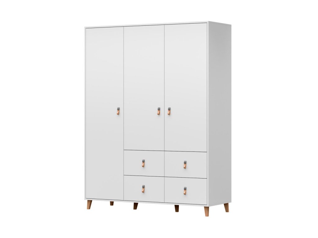 Na tejto šatníkovej skrini vám určite ako prvé udrú do očí veľmi netradičné úchyty. Tieto rukoväte sú vyrobené z kože a teda nie sú pri dotyku pevné, ako sme pri nábytku väčšinou zvyknutí. Ak si však vyskúšate skriňu otvoriť pomocou tohto úchytu, zistíte, že to ide veľmi jednoducho a plynulo – porovnateľne napríklad s tlakovými výsuvnými systémami bez úchytov. Ak sa vám táto skriňa zapáči, môžete si z rovnakej kolekcie Anita vyskladať celú nábytkovú zostavu napríklad do študentskej izby. V ponuke máme aj pracovný stolík, komody, skrinky, nočné stolíky, police, ale dokonca aj postele z rovnakej kolekcie. Objednať si môžete aj kompletnú detskú izbu Anita, súčasťou ktorej je biela detská posteľ, nočný stolík s úložným priestorom pre osobné veci, komoda s tromi zásuvkami, komoda s tromi zásuvkami a jednými dvierkami, písací stôl, nástenná polica, ale aj predmetná šatníková skriňa.