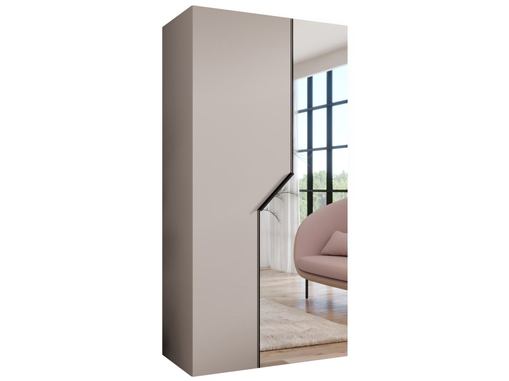 Kašmírová šatníková skriňa Andrew 2 prináša do priestoru jemný a sofistikovaný odtieň, ktorý vytvára príjemnú, modernú atmosféru. Minimalistický tvar dopĺňa diagonálne riešená úchytka, ktorá dodáva skrini osobitý charakter a vizuálny akcent. Precízne CNC frézované dvere zdôrazňujú kvalitu spracovania, zatiaľ čo veľké zrkadlo na čelnej strane opticky zväčšuje miestnosť a zvyšuje komfort každodenného používania. Kašmírové prevedenie sa elegantne hodí do moderných, ale aj klasicky ladených interiérov – od spální, cez obývacie izby až po chodby.