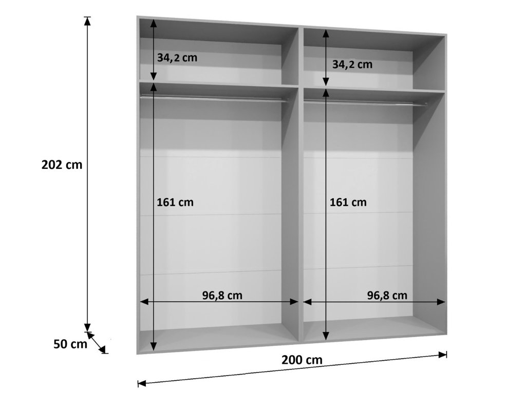 | Presná šírka skrine: | 200 cm |
