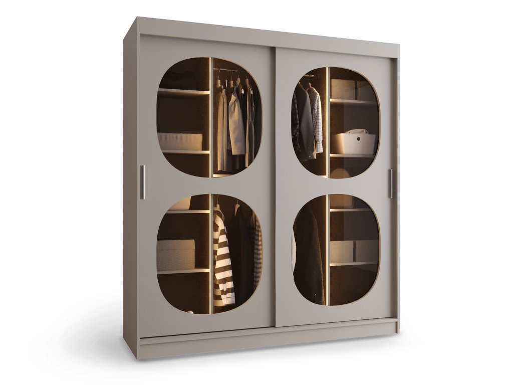 Skriňa Bahrajn 2 v elegantnej kašmírovej farbe prináša kombináciu moderného dizajnu a funkčného riešenia do každej spálne alebo predsiene. So šírkou 180 cm ponúka dostatočný priestor na usporiadanie oblečenia, doplnkov či sezónnych vecí, pričom posúvne dvere šetria miesto a zároveň dotvárajú nadčasový vzhľad skrine.
