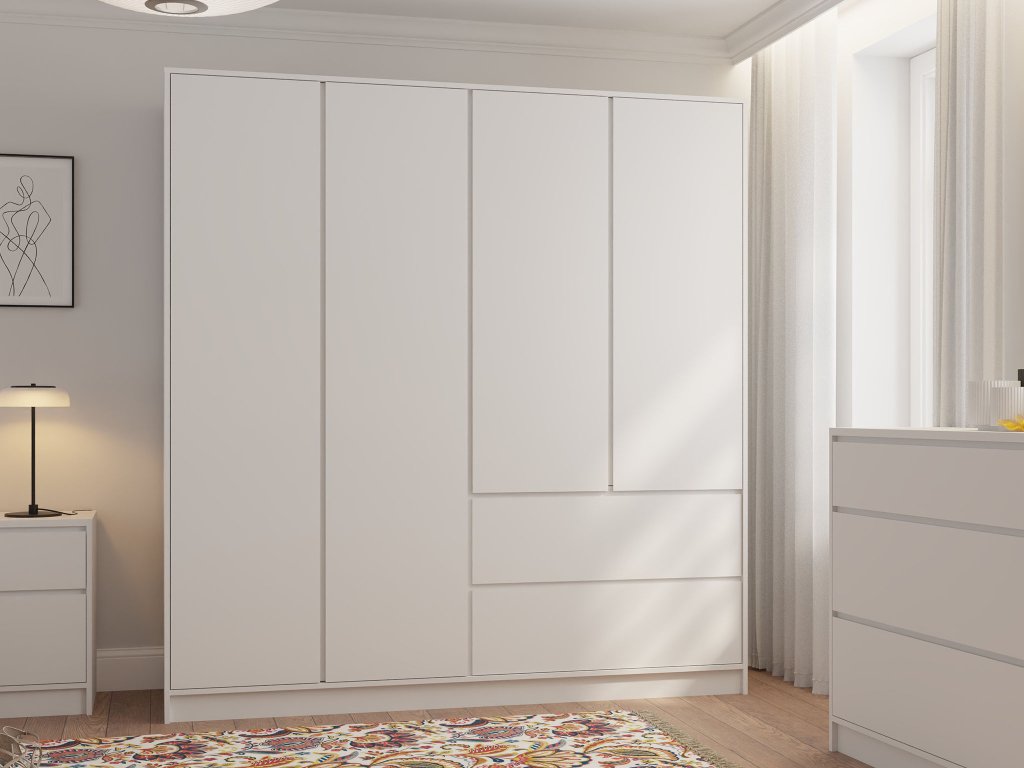 Šatníková skriňa Basit 4D2S - biela