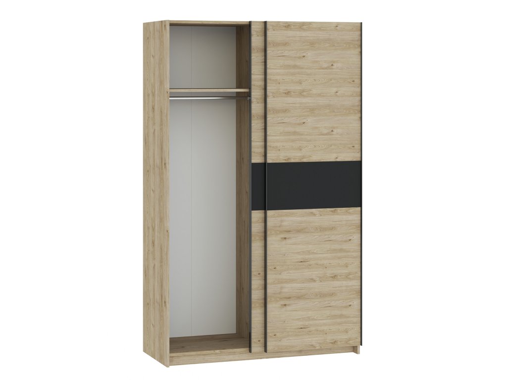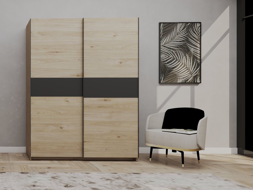 Dubová skriňa Berno 120 s grafitovou lištou v strede dverí je elegantným a praktickým doplnkom každej spálne, predsiene alebo obývačky. Vyrobená z odolnej laminátovej dosky s hrúbkou 16 mm, skriňa ponúka dlhú životnosť a moderný vzhľad. Vnútro skrine je vybavené závesnými tyčami na oboch stranách a policami nad nimi, čo poskytuje dostatočný priestor na prehľadné uloženie šiat a iného oblečenia.