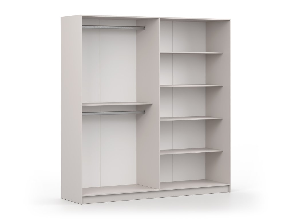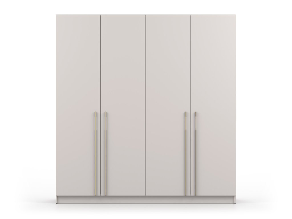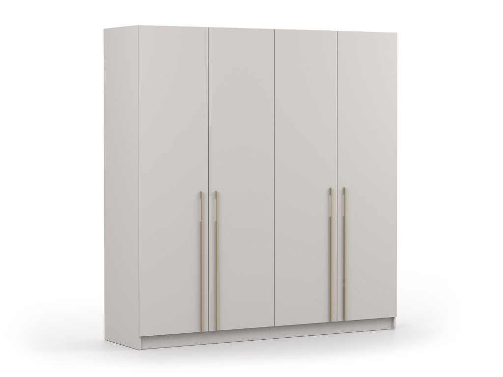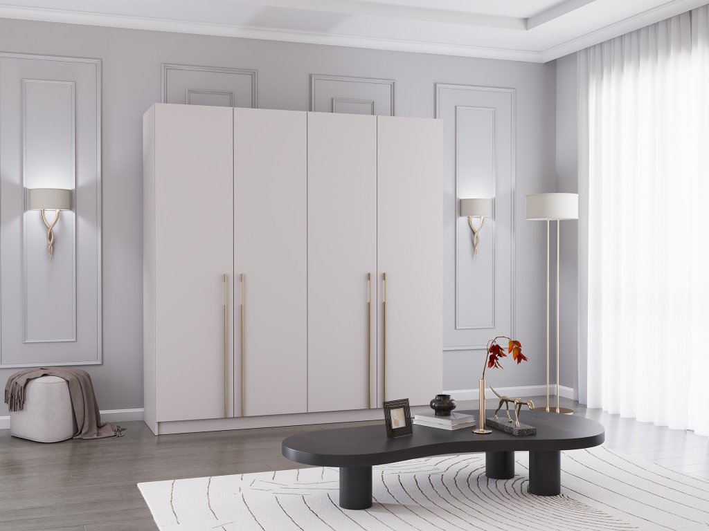 Šatníková skriňa Casmira 4D v kašmírovej farbe spája eleganciu, funkčnosť a jemný luxus. Matný povrch pôsobí vzdušne a moderne, zatiaľ čo zlaté úchytky zvýrazňujú jej sofistikovaný charakter. Vo vnútri sa nachádzajú dve závesné tyče a priestranné police, ktoré ponúkajú dostatok miesta na prehľadné usporiadanie oblečenia. Skriňa do spálne Casmira 4D je ideálnym doplnkom do modernej alebo klasickej spálne a krásne vynikne v kombinácii s ostatným nábytkom z rovnakej kolekcie.