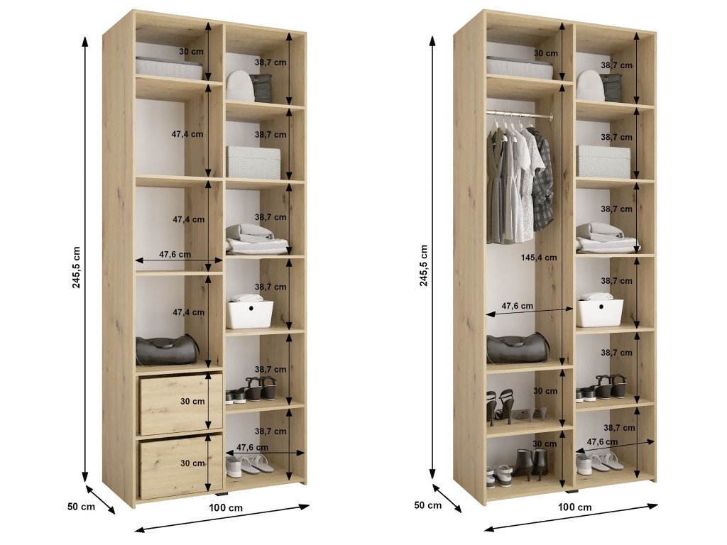 - Rozmer (šxvxh): 100 x 245,5 x 50 cm
