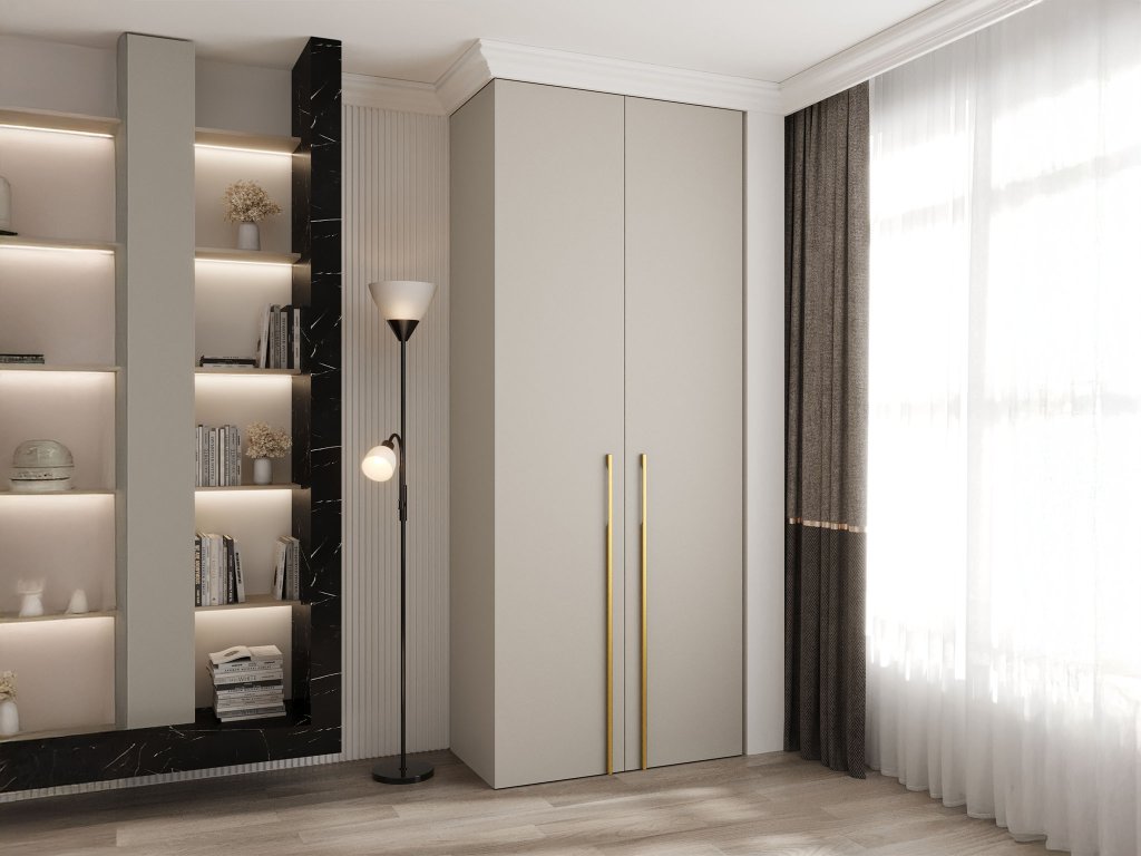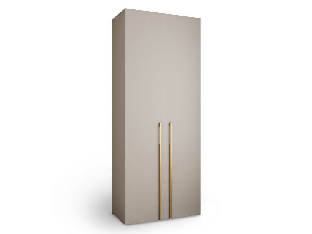 Šatníková skriňa Como 3 je dokonalým spojením funkčnosti a elegantného dizajnu, ktorý vynikne v každom modernom interiéri. Je ideálnym kusom do predsiene, spálne aj obývačky. Minimalistická silueta v kašmírovej farbe je obohatená o decentné úchytky v zlatom prevedení, ktoré sú umiestnené v spodnej časti dverí – ideálny detail pre milovníkov jemného luxusu. Korpus skrine je vyrobený z kvalitnej laminovanej nábytkovej dosky s hrúbkou 16 mm, ktorá zaručuje dlhodobú odolnosť. Hrany sú starostlivo upravené 0,5 mm PVC dyhou, čo zvyšuje ochranu proti poškodeniu a predlžuje životnosť nábytku. Zadná časť je z pevnej HDF dosky, vďaka čomu je celá konštrukcia stabilná a pevná.