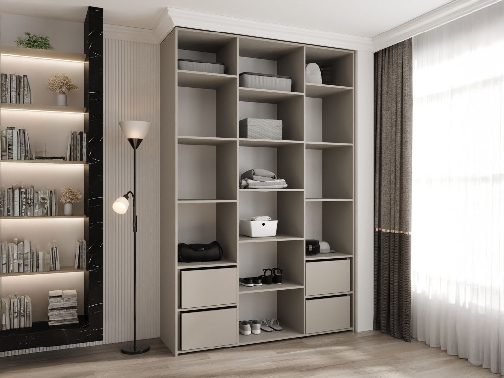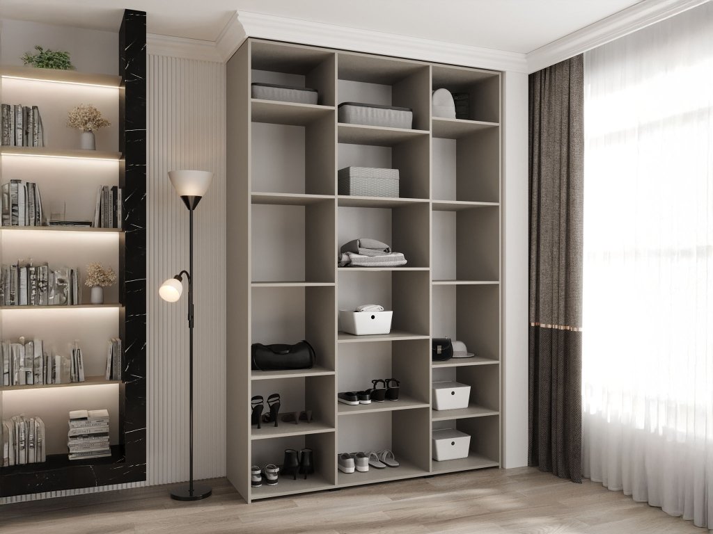 Ak hľadáte spojenie štýlu a praktickosti vo vyšších priestoroch, skriňa Como 3 je skvelou voľbou. Trojdverové prevedenie v matnej kašmírovej farbe pôsobí elegantne a moderne zároveň. Vďaka čistým líniám a premyslenej vnútornej dispozícii pomôže udržať poriadok a zároveň prirodzene zapadne do akéhokoľvek interiéru – od spálne až po predsien. Štýlové riešenie pre tých, ktorí hľadajú rovnováhu medzi estetikou a funkčnosťou.