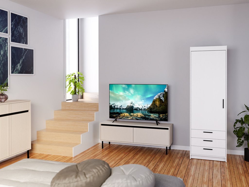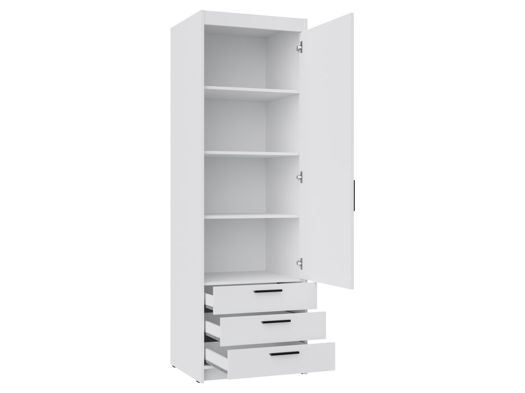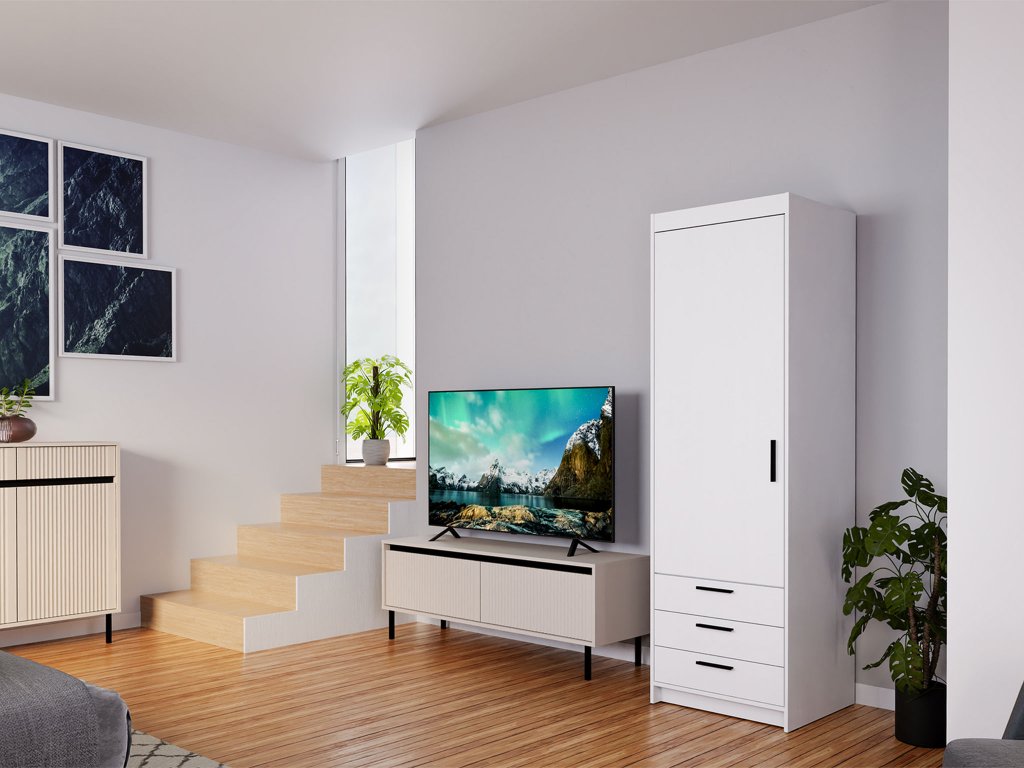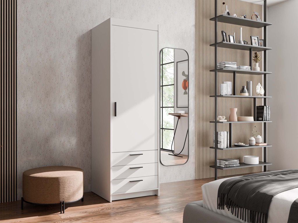 Šatníková skriňa s policami je vyrobená z laminovanej dosky s melamínovým okrajom, čo zaručuje odolnosť voči bežnému opotrebeniu. Praktické vnútorné usporiadanie zahŕňa štyri priestranné police na oblečenie, doplnky či obliečky. V spodnej časti sa nachádzajú tri menšie zásuvky, ideálne na odkladanie drobností, ako sú šatky, spodné prádlo alebo dokumenty. Elenas 1D je dokonalou voľbou pre tých, ktorí potrebujú organizovaný priestor svojej chodby, spálne, či pracovne.